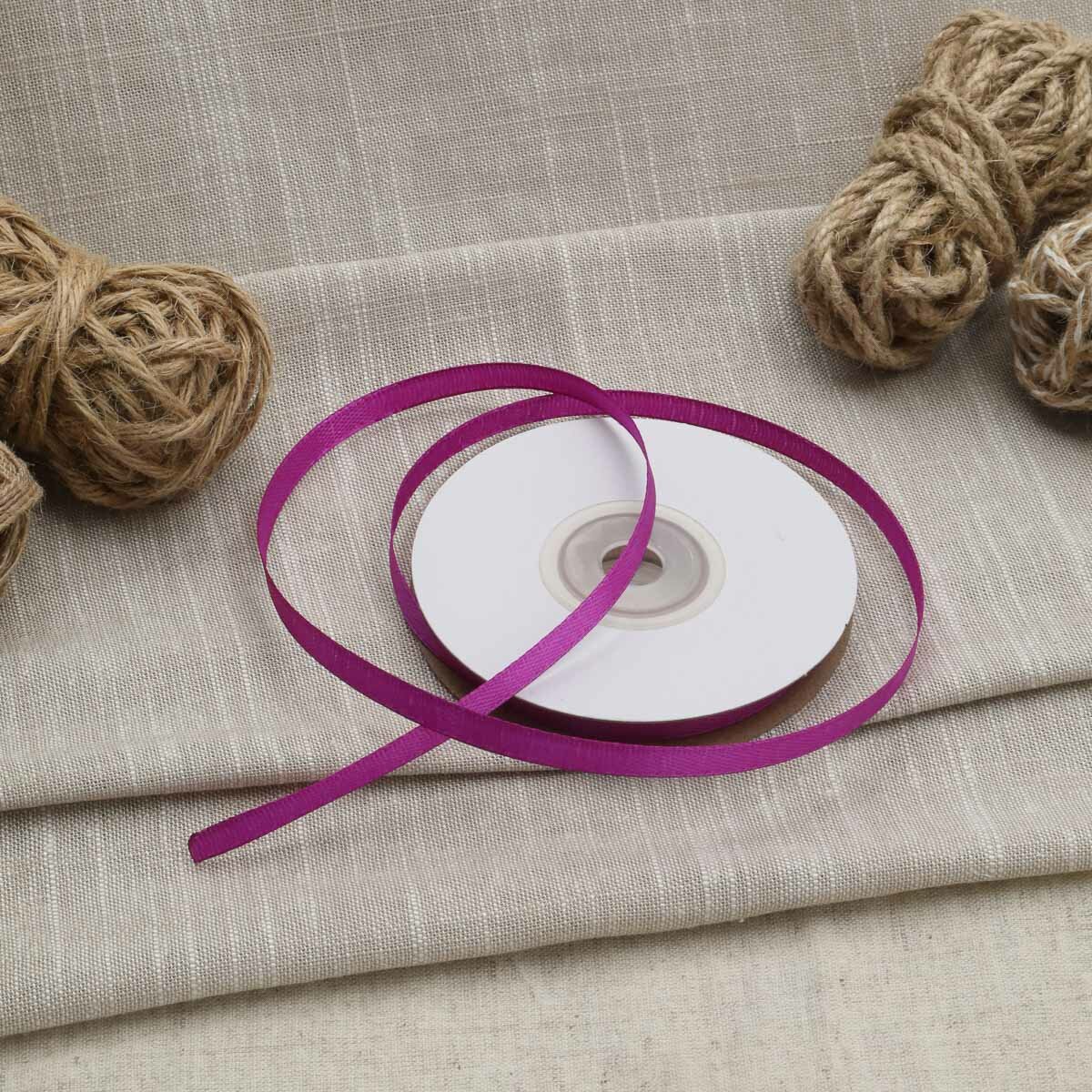 Лента атласная декоративная Айрис, 6мм*22,86м, полиэстер (166 темно-сиреневый)