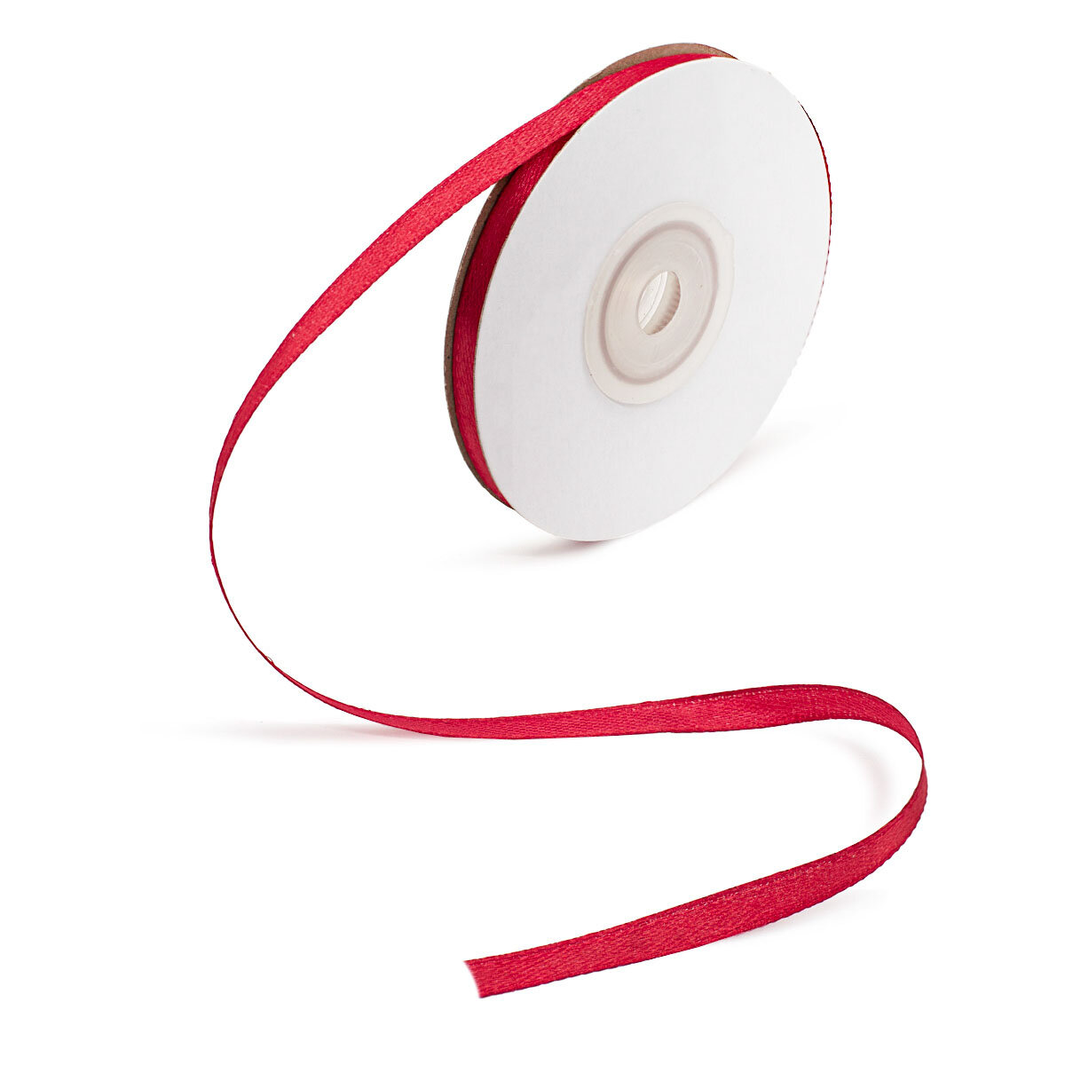 Лента атласная 0,6 см*22,86 м (027 ярко-красный)