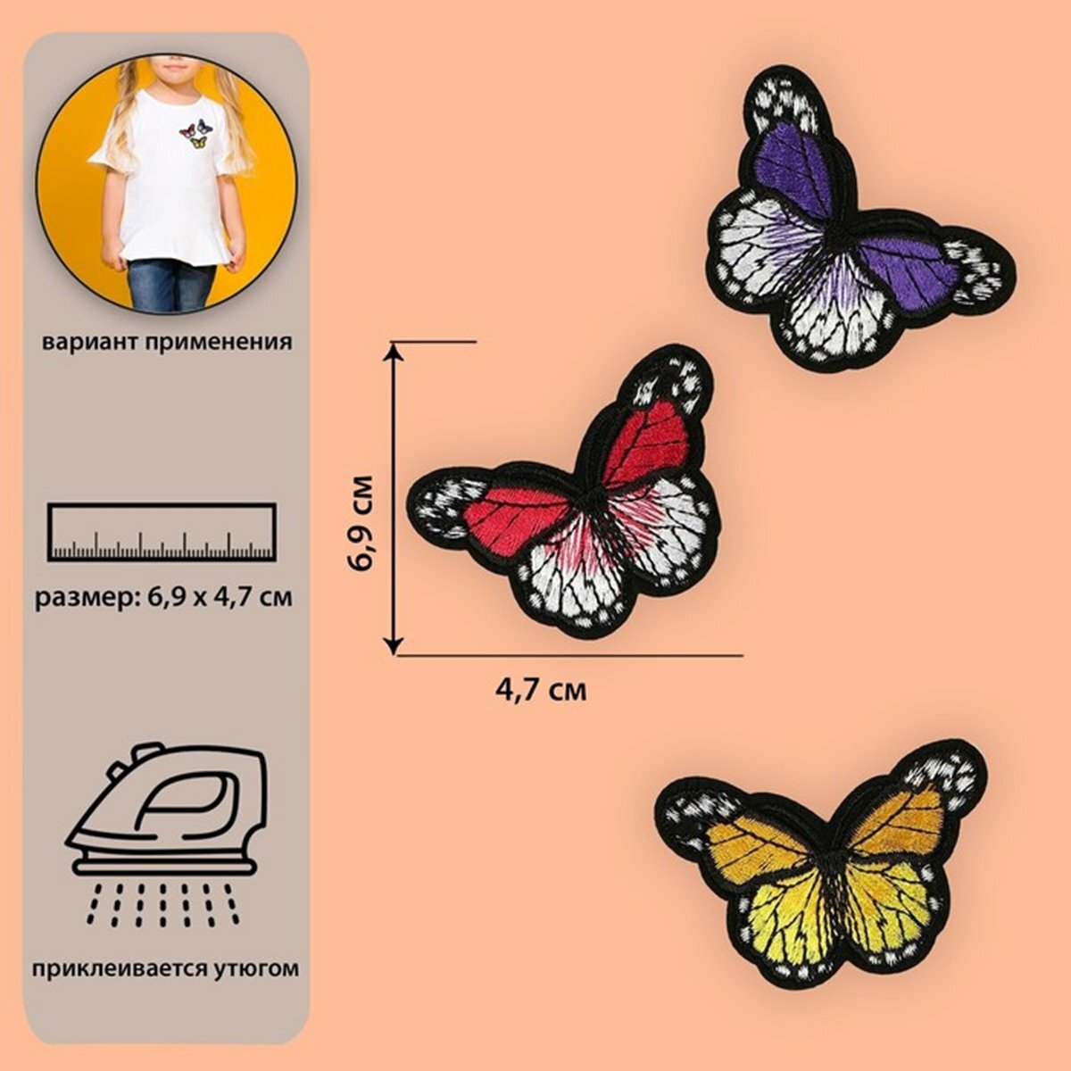 Набор термоаппликаций для одежды Арт Узор 'Бабочки', 3579253, 3 шт интересное: