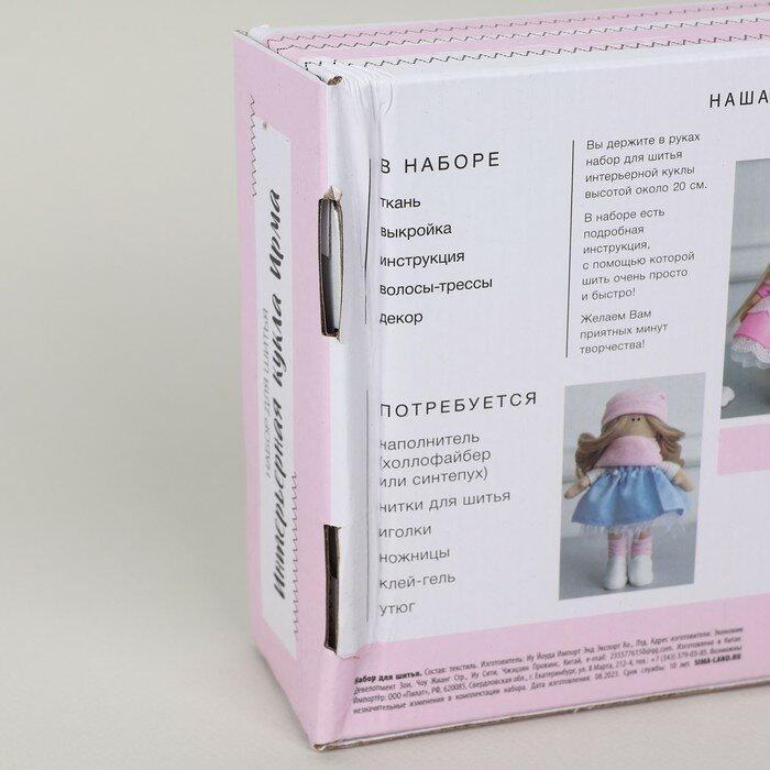 Купить Интерьерная кукла "Ирма", набор для шитья, 21 × 29,7 × 0,5 см