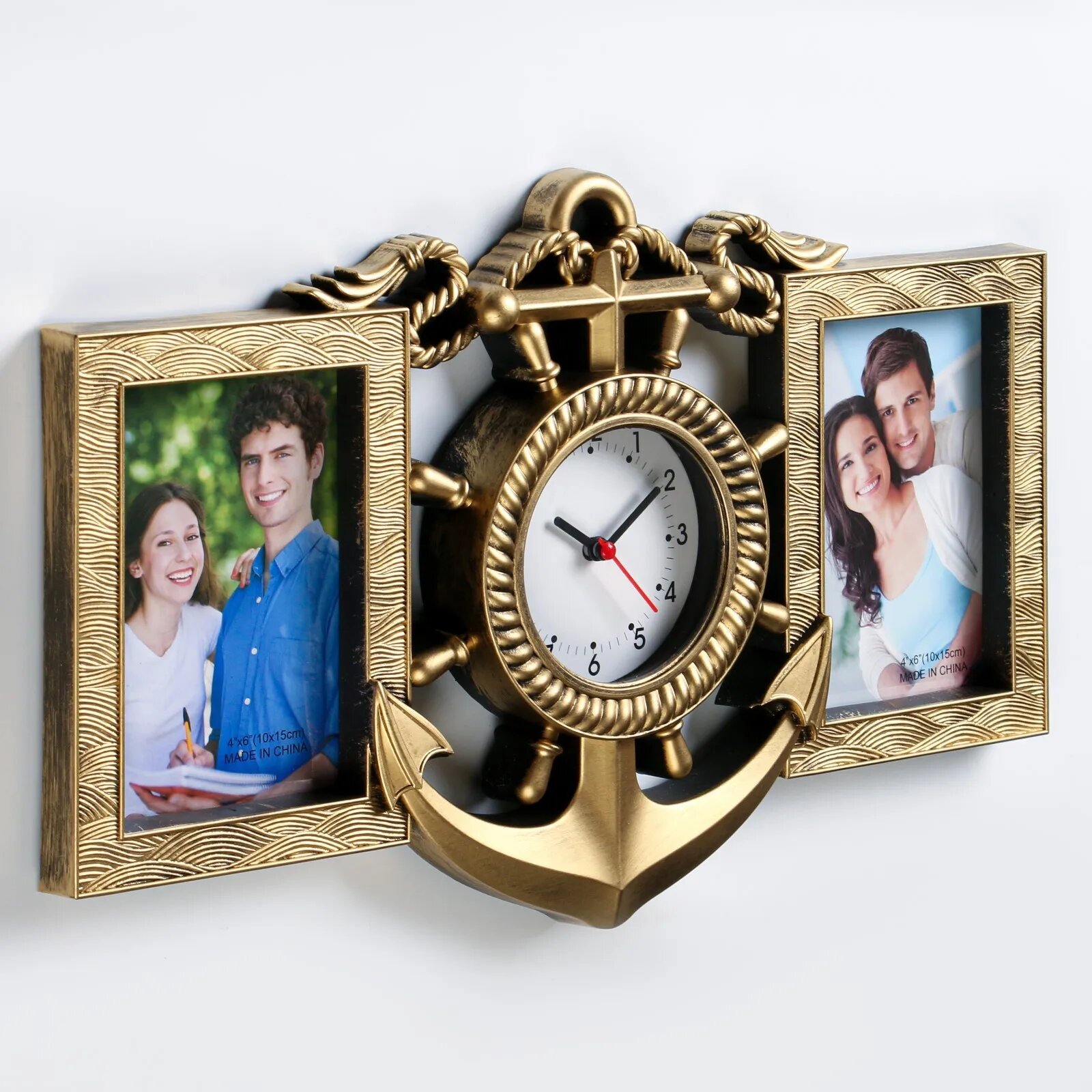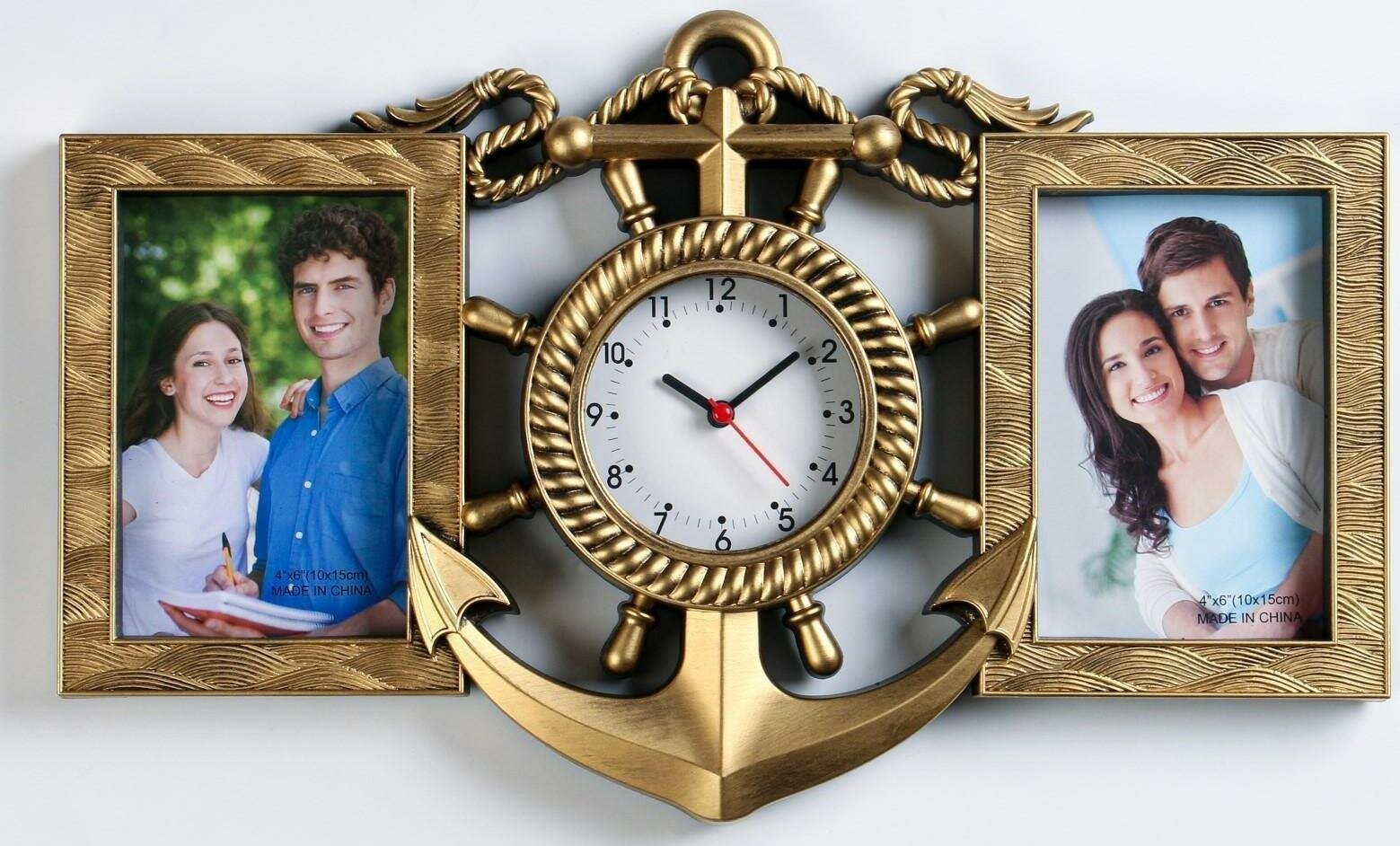 Купить Часы настенные с фоторамками "Якорь", плавный ход, часы d=12 см, 42х27х3 см 5205095