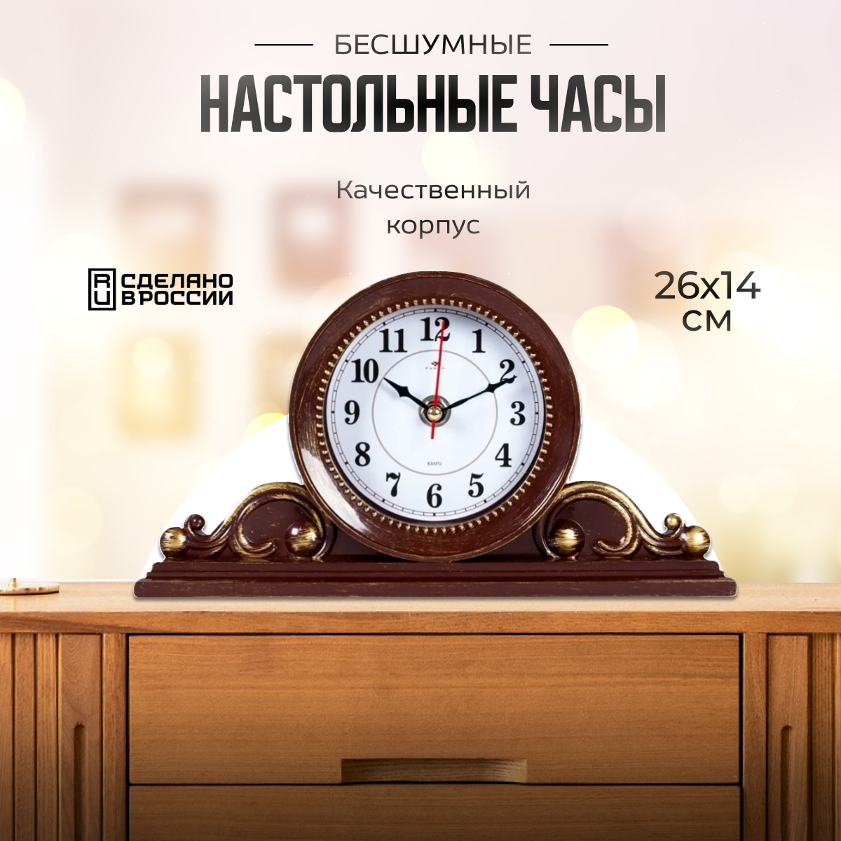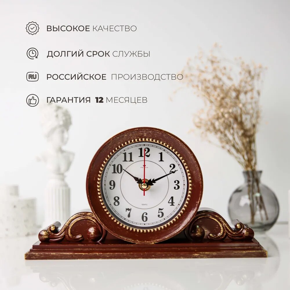 Купить Часы настольные классические Рубин бесшумные, 26 х 14 см / часы для дома на батарейках