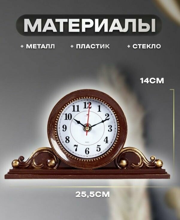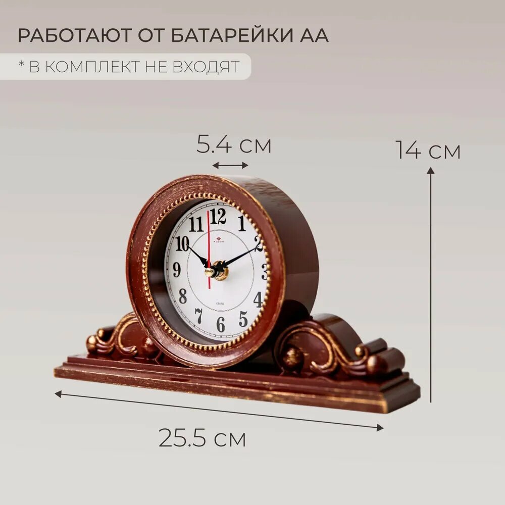 СохранитьЧасы настольные классические Рубин бесшумные, 26 х 14 см / часы для дома на батарейках интересное: