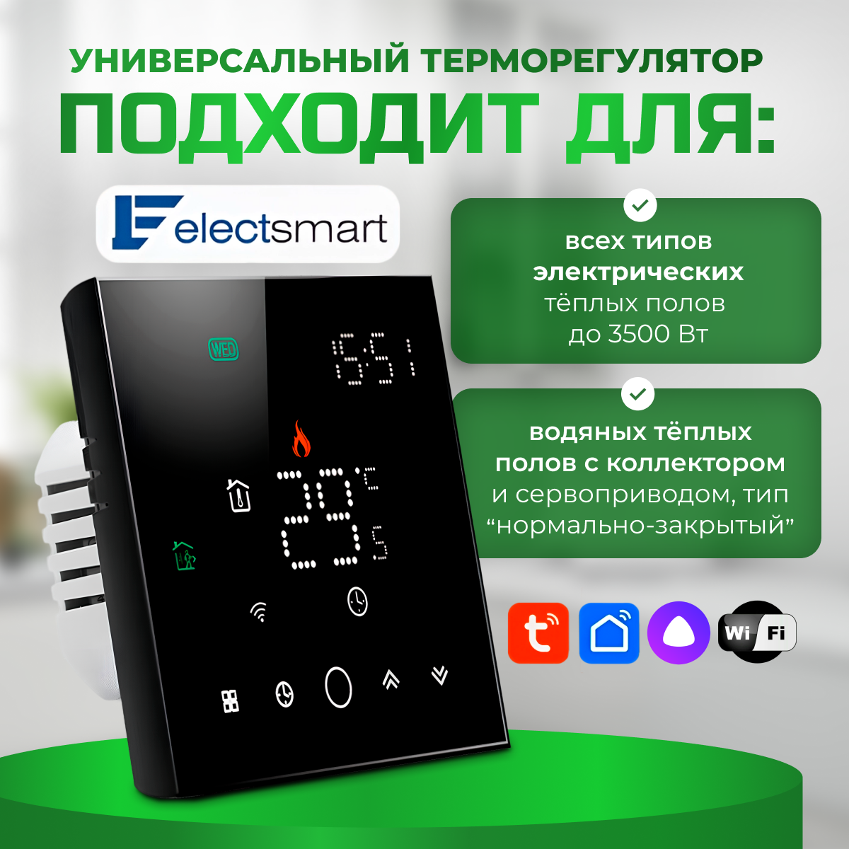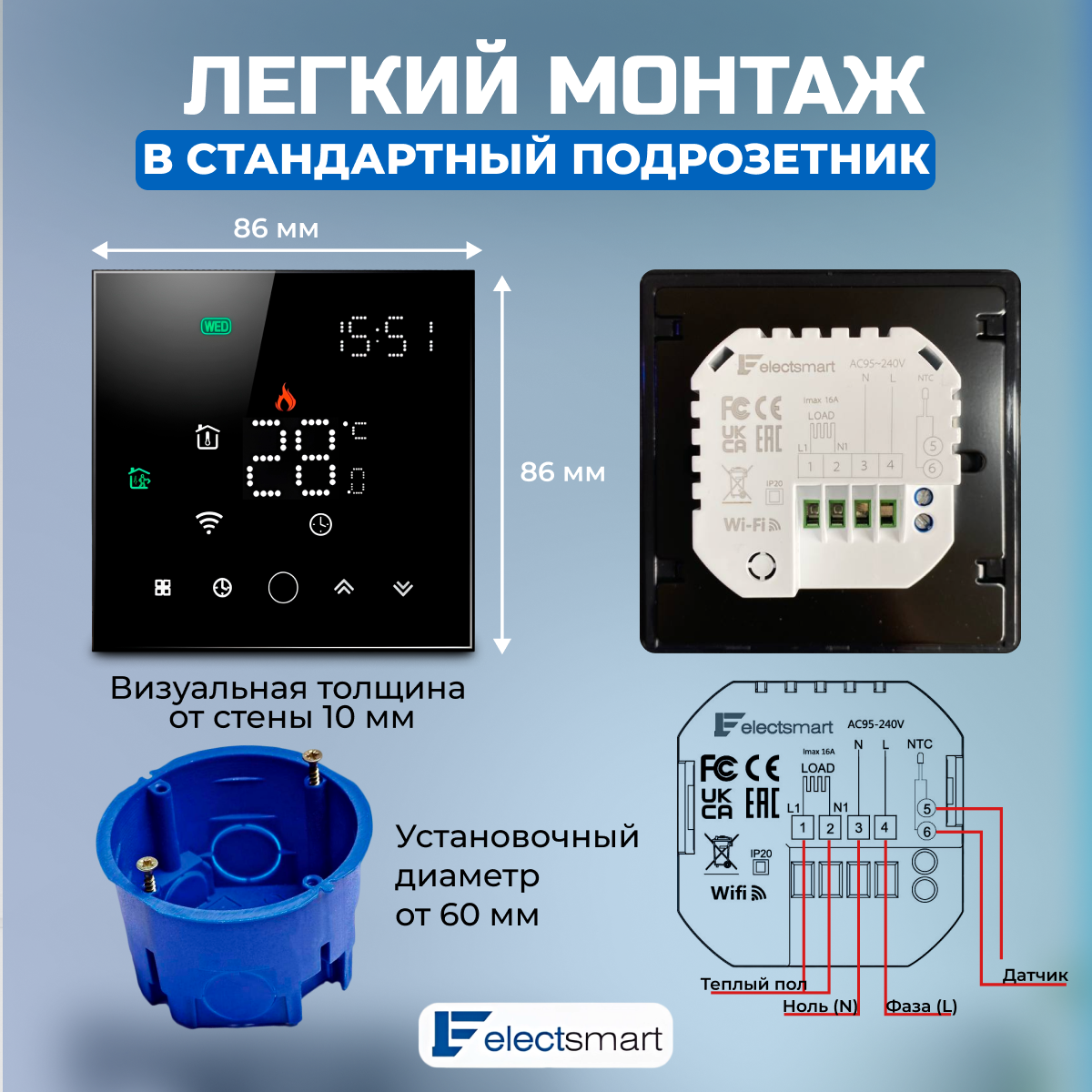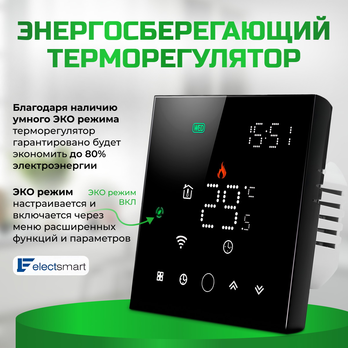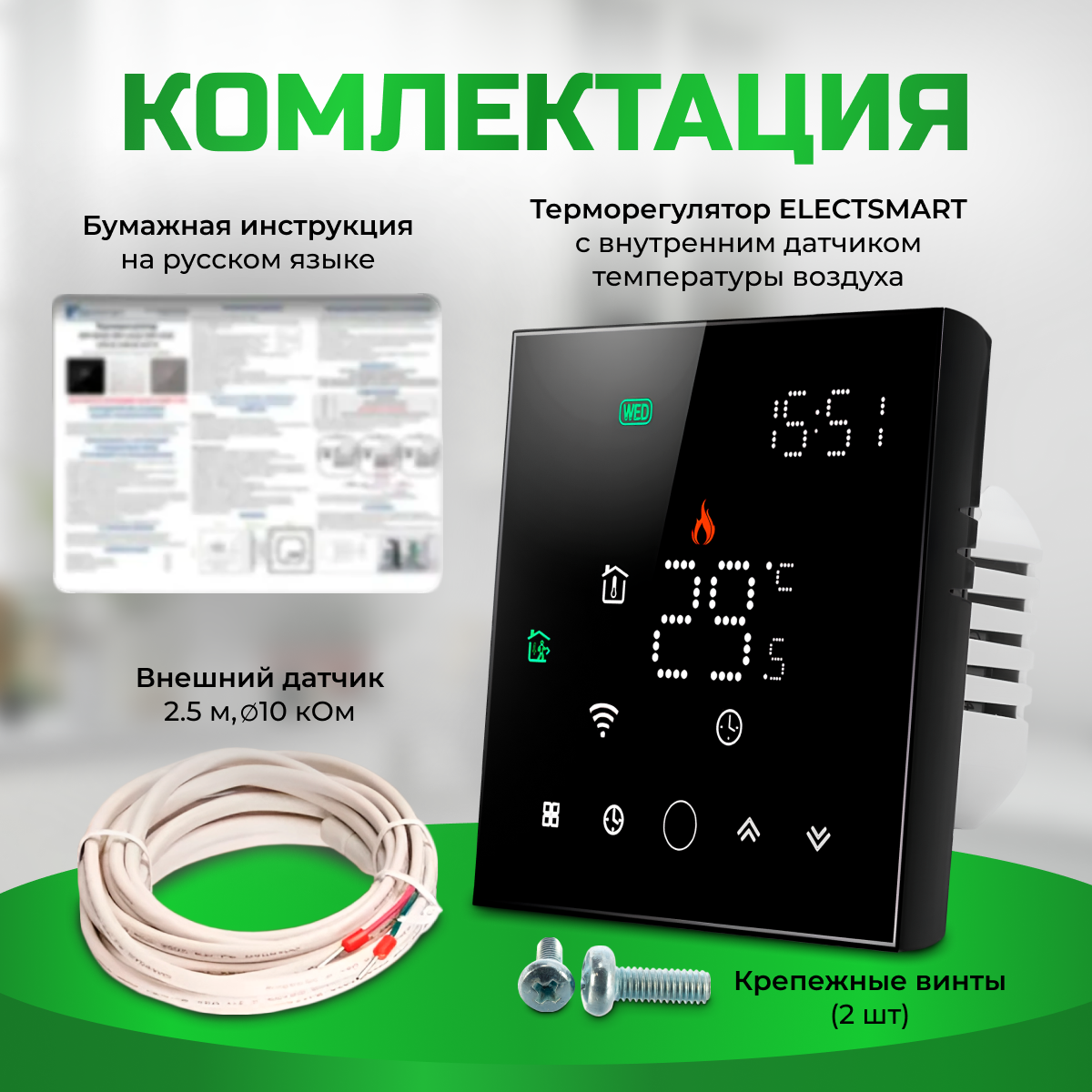 Купить EST-200W-YM Терморегулятор для теплого пола электрического и водяного, универсальный с датчиком, программируемый термостат с WiFi, голосовое управление Яндекс Алиса, цвет: черный. 3500 Вт, ELECTSMART