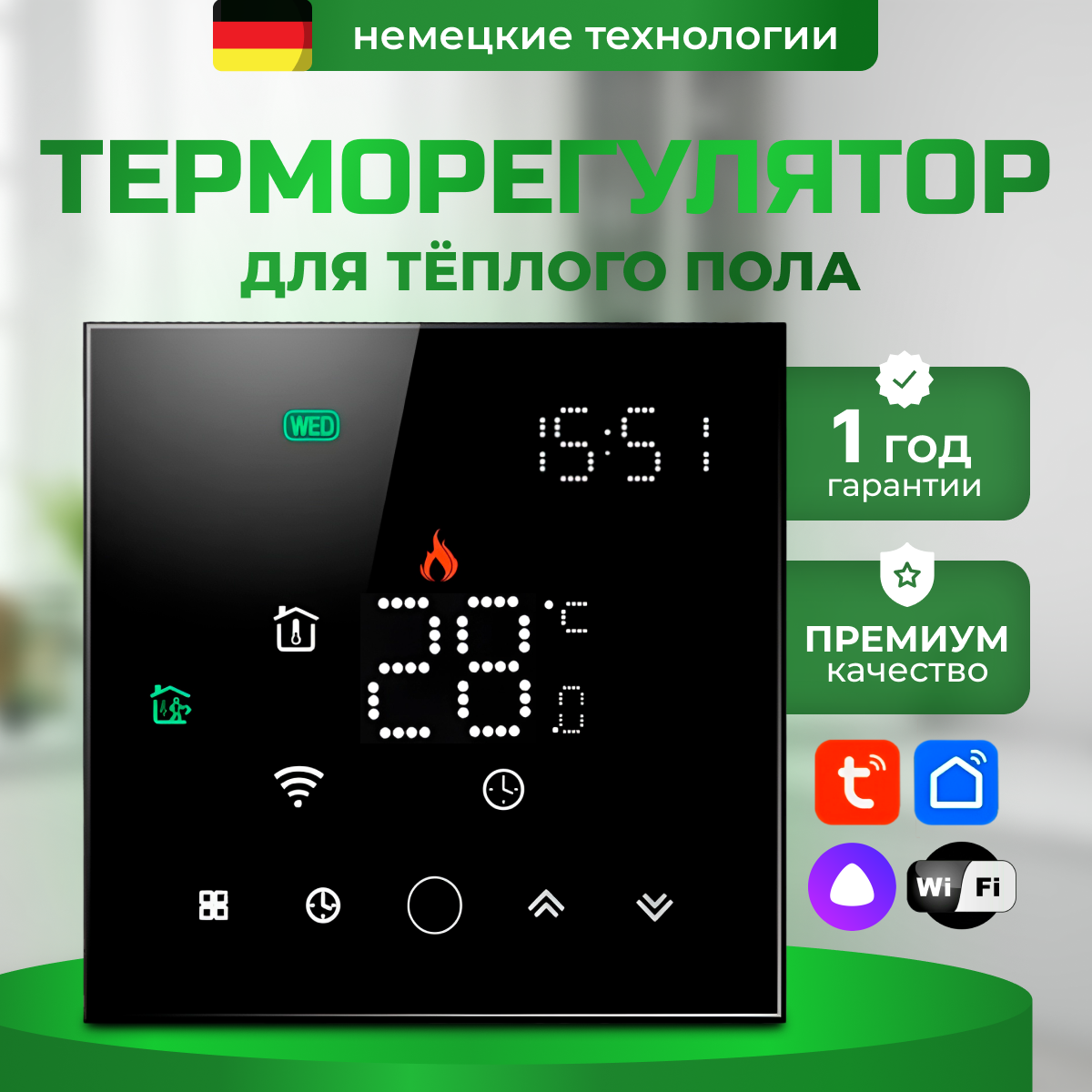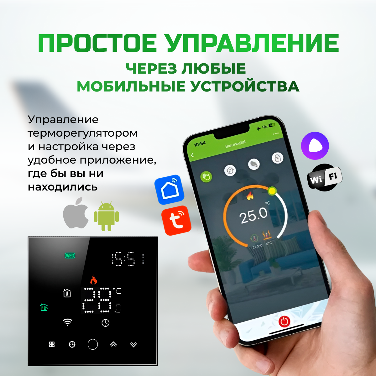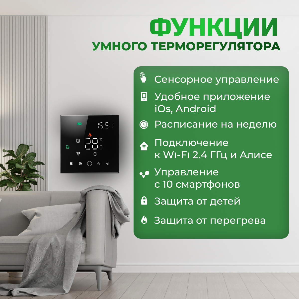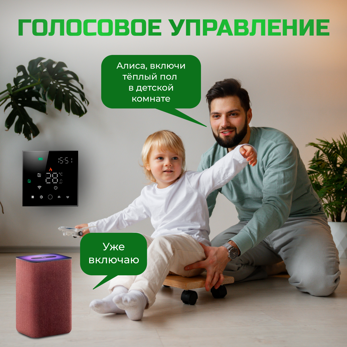 Купить EST-200W-YM Терморегулятор для теплого пола электрического и водяного, универсальный с датчиком, программируемый термостат с WiFi, голосовое управление Яндекс Алиса, цвет: черный. 3500 Вт, ELECTSMART