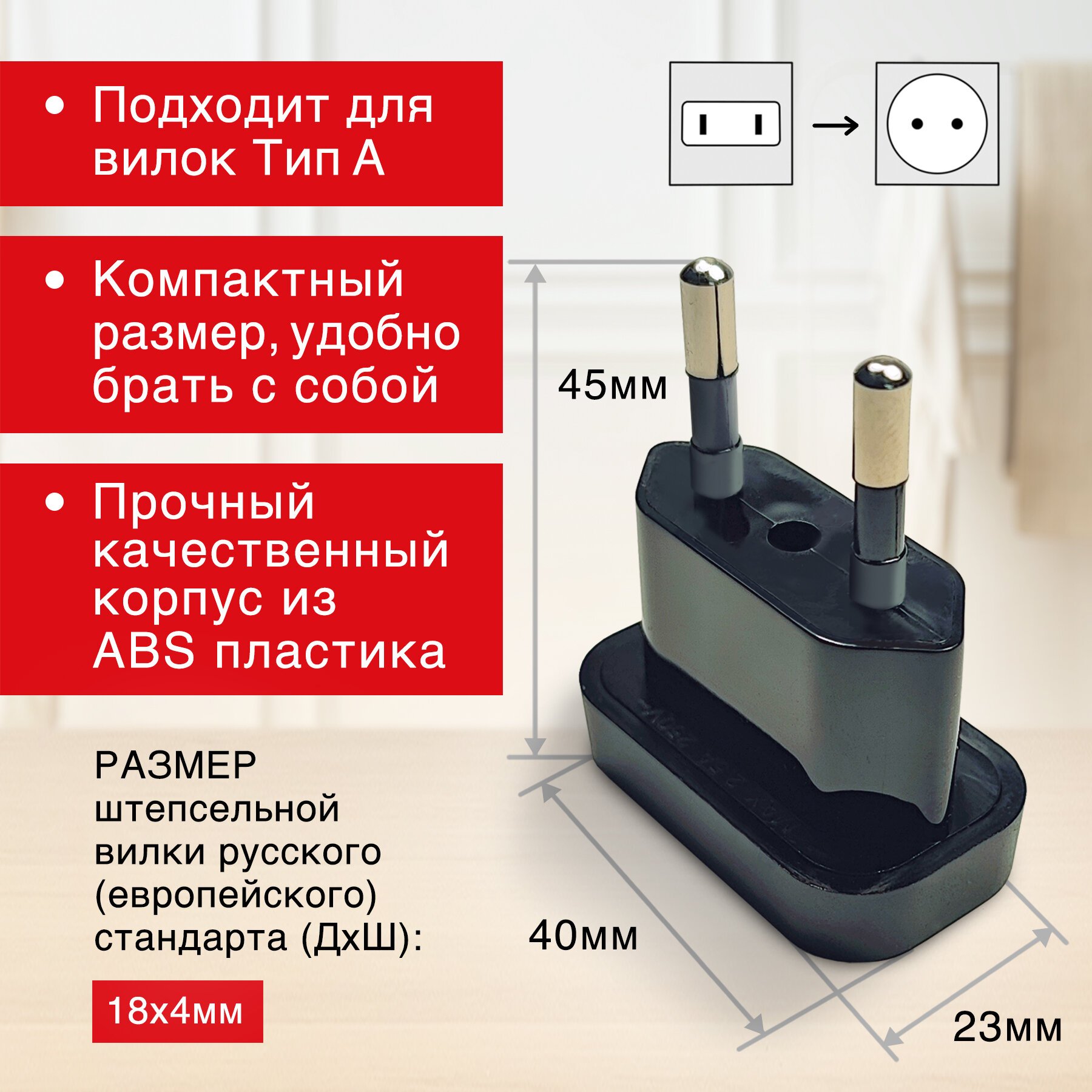 Сетевой адаптер короткий - переходник на российскую (европейскую) вилку для розетки с китайской и американской US/CN. Чёрный, ток 7А