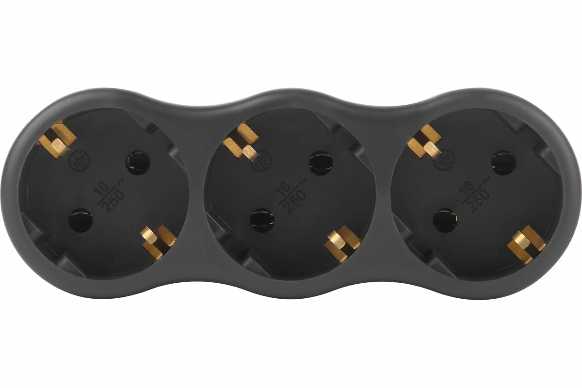 Тройник разветвитель SPx-3e-B ЭРА электрический Разветвитель на 3 розетки с заземлением 16А черный