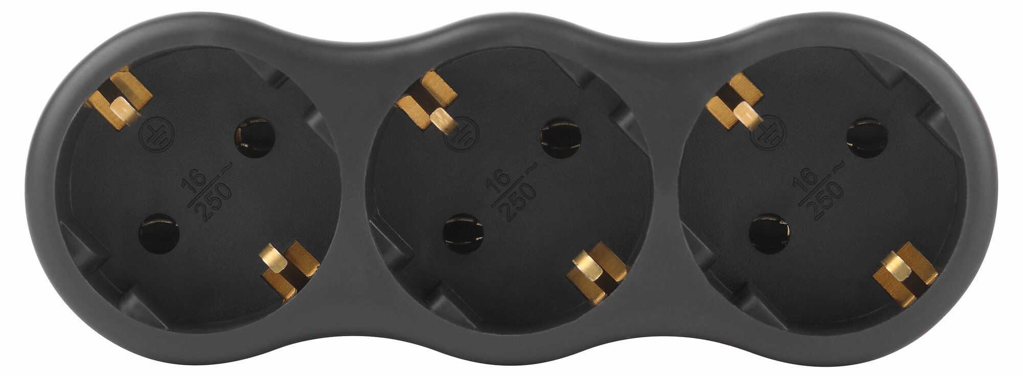 Разветвитель электрический SPx-3e-B на 3 розетки с заземл. 16А черн. Эра Б0059723