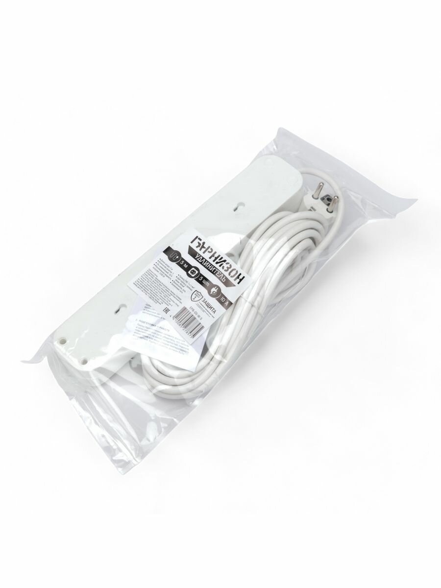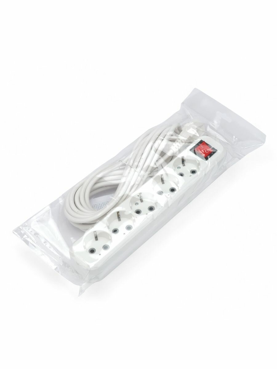 Купить Удлинитель Гарнизон белый 10А 5м с выключателем и заземлением 1 уровень защиты EPB-G5-W-5