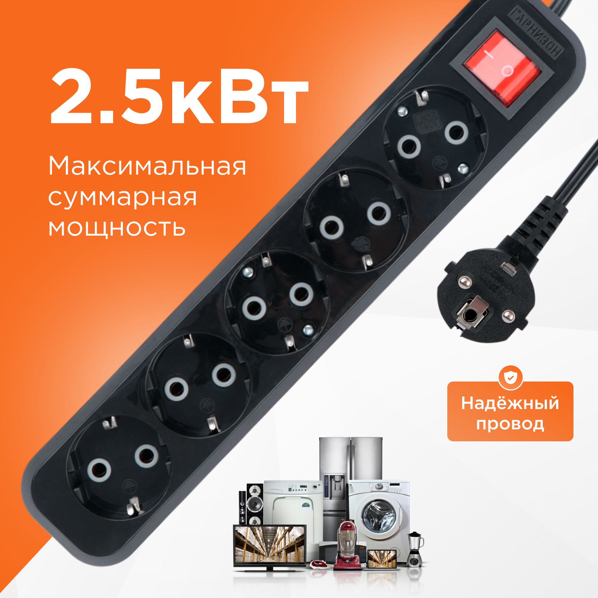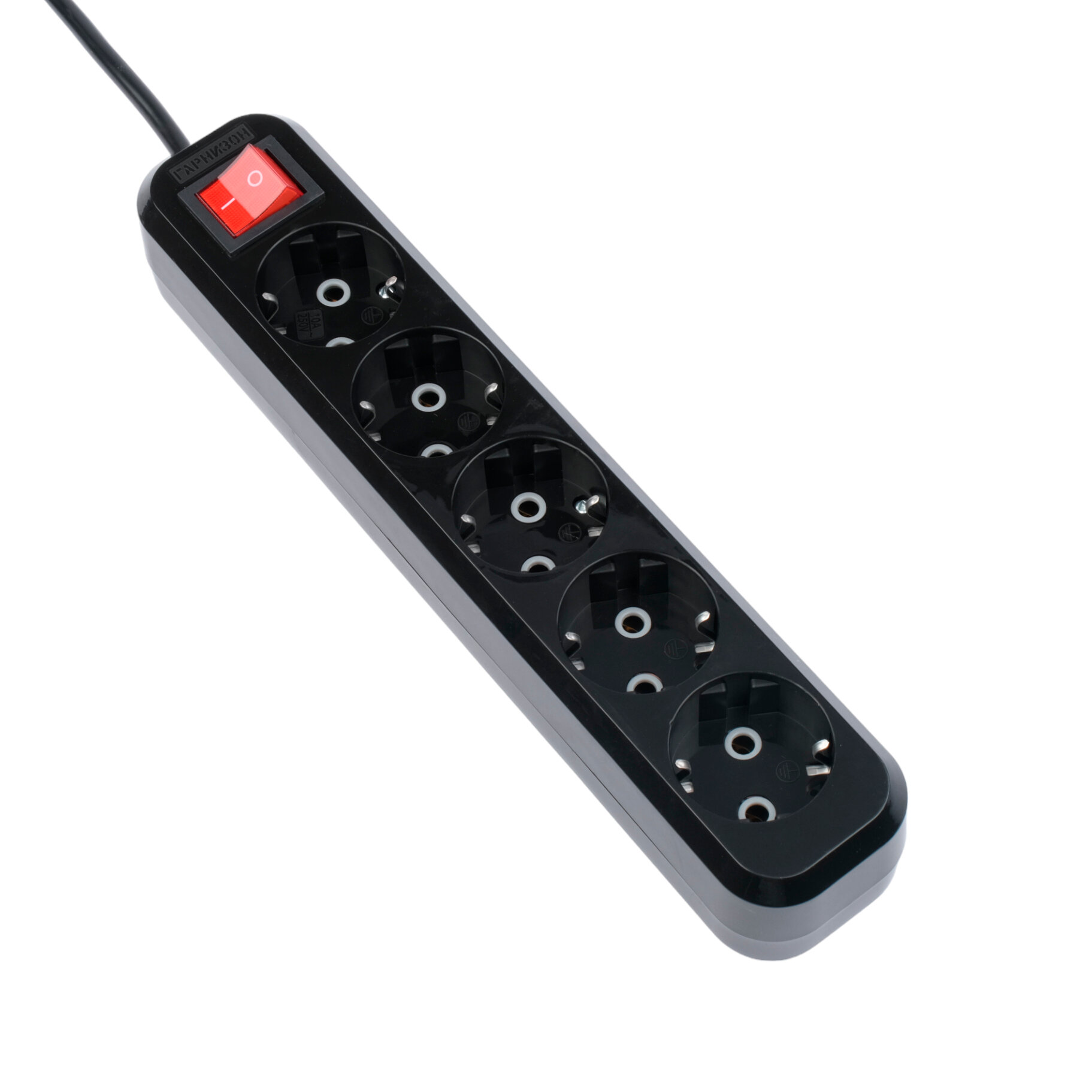 Удлинитель Гарнизон черный 10А 5м с выключателем и заземлением 1 уровень защиты EPB-G5-B-5