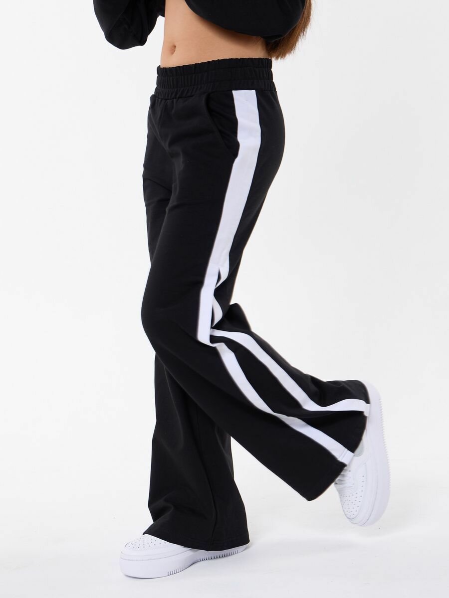 Брюки широкие палаццо с лампасами для девочки, спортивные штаны, 134 , хлопок, школьные