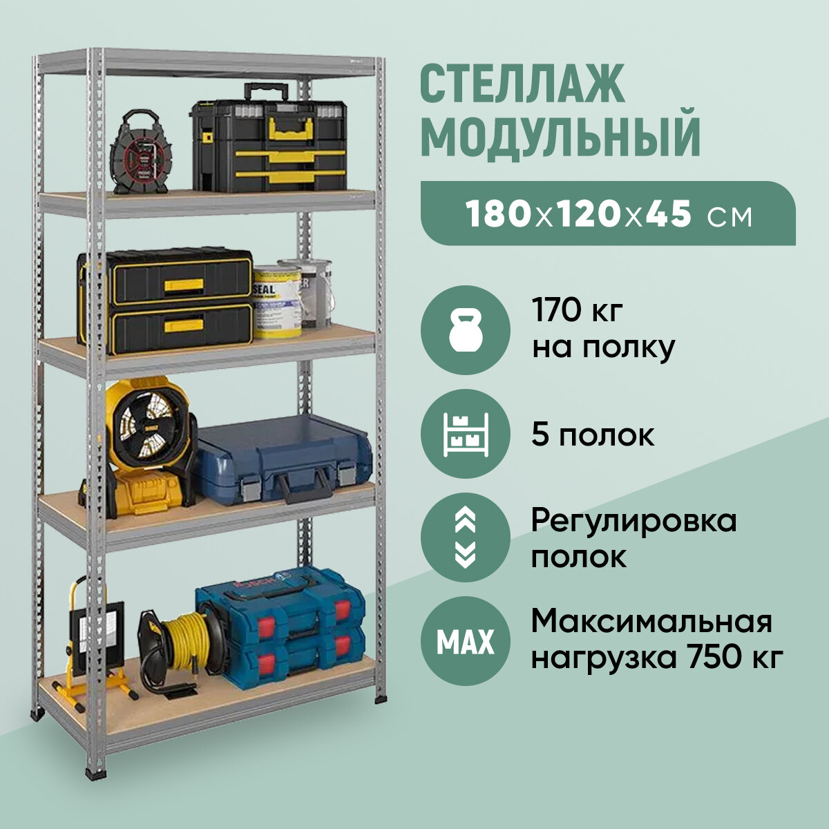 | Допустимая нагрузка на стеллаж | 750 кг |