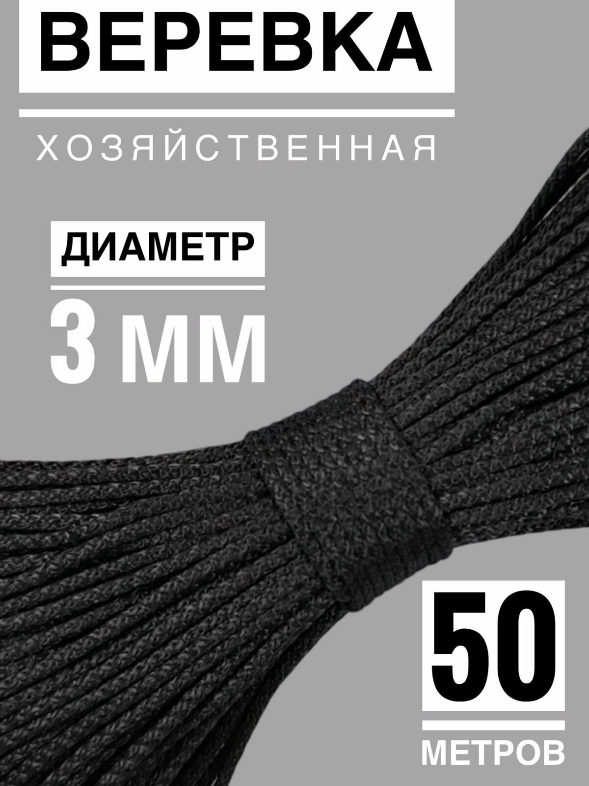 Веревка бельевая "черная" 50 м. d 3 мм, хозяйственная, универсальная, шнур для сушилки, для дома и дачи интересное: