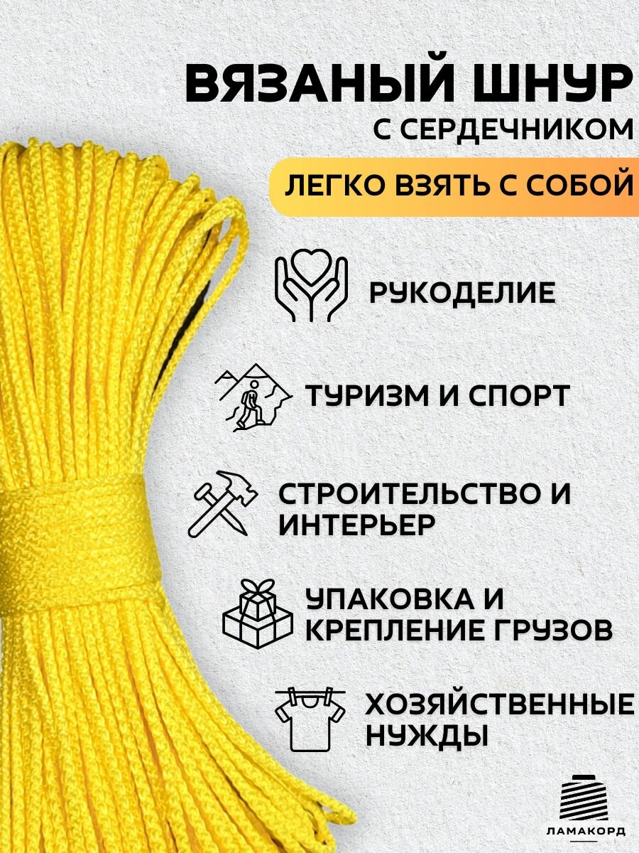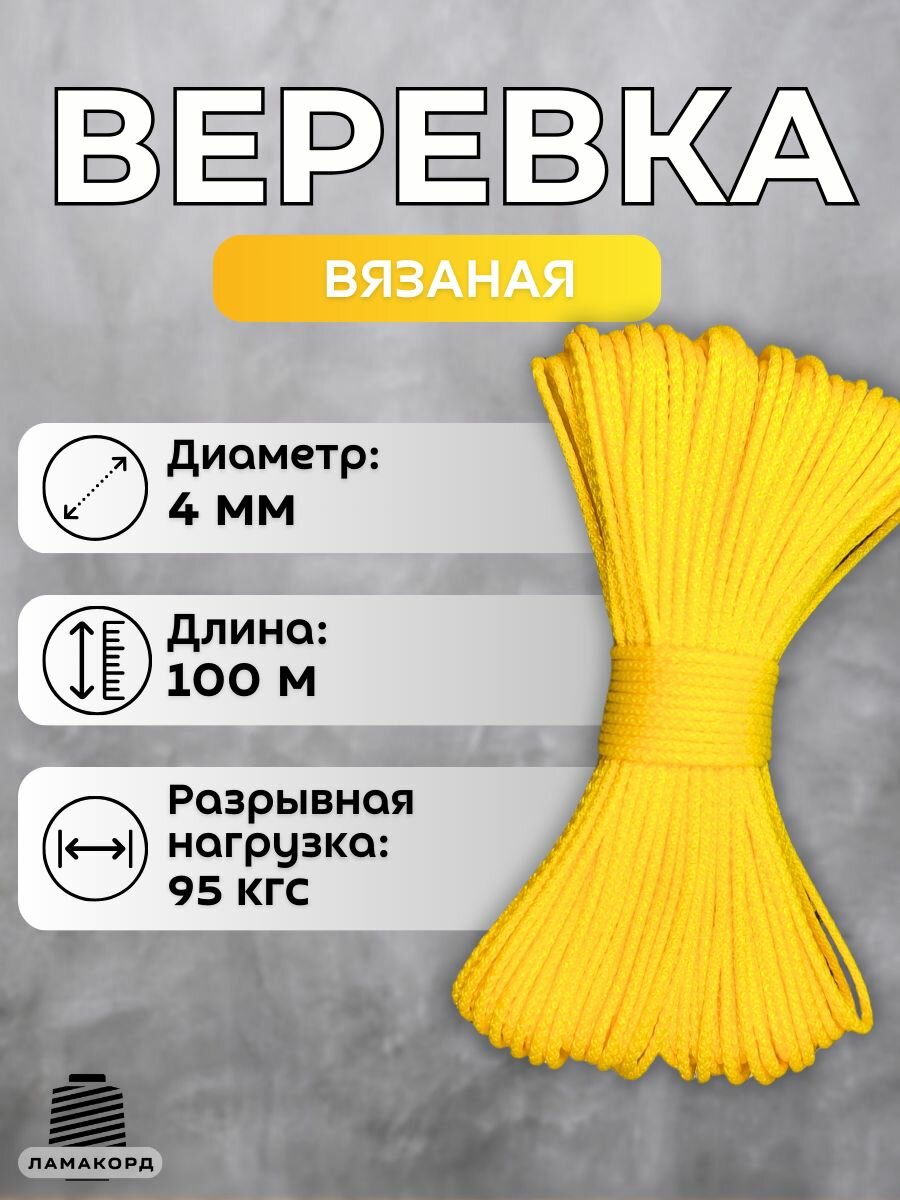 Веревка бельевая 4 мм 1000 м желтая. Шнур бельевой вязаный с сердечником. Шнур для рукоделия