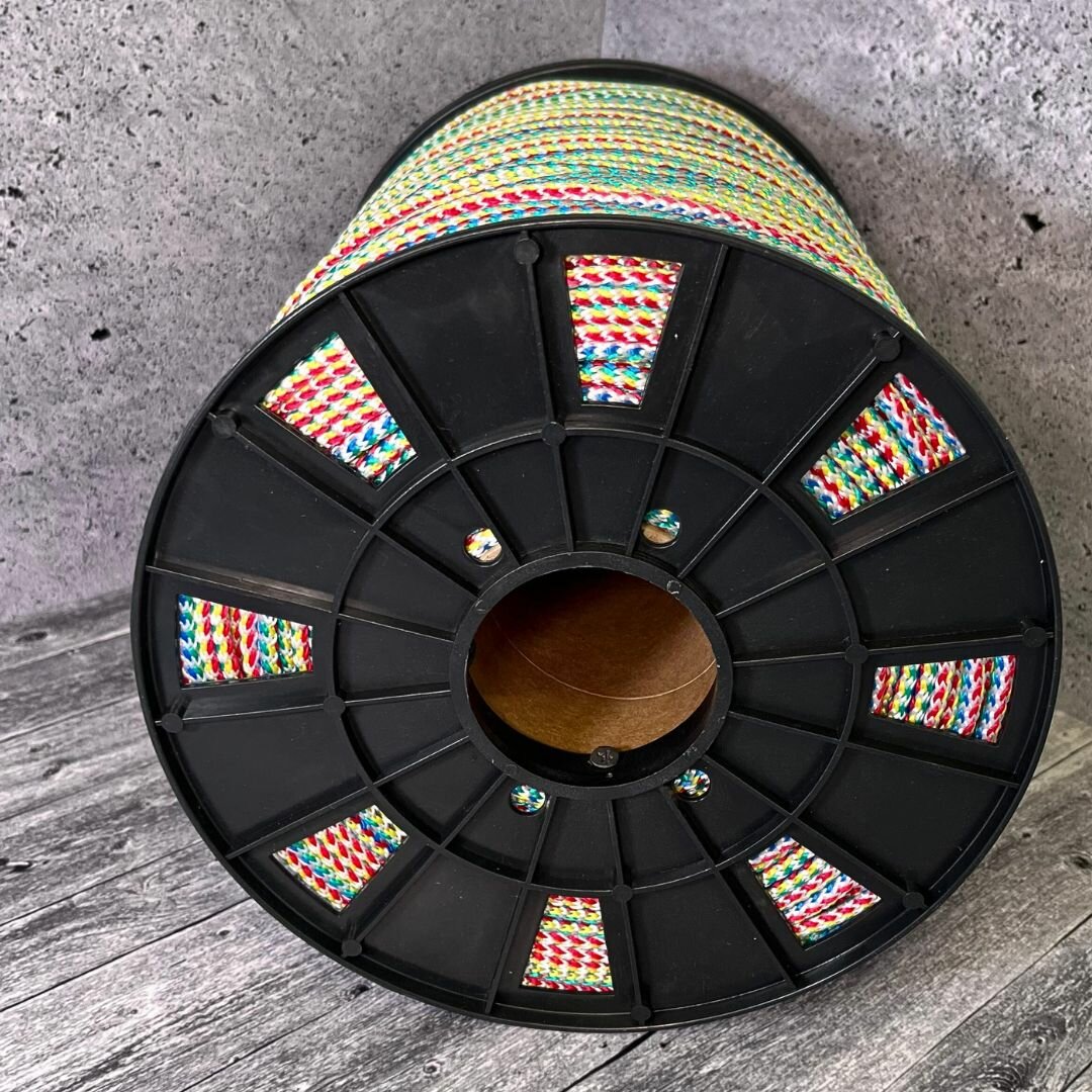 СохранитьВеревка бельевая 6 мм 400 м цветная. Шнур бельевой вязаный с сердечником. Шнур для рукоделия интересное:
