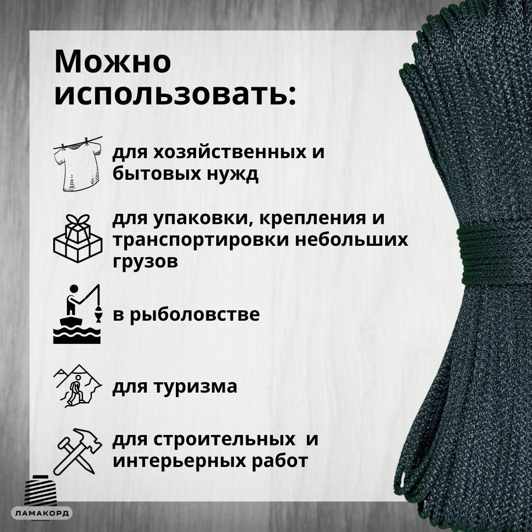 Веревка бельевая 4 мм 100 м зеленая. Шнур бельевой вязаный полипропиленовый с сердечником