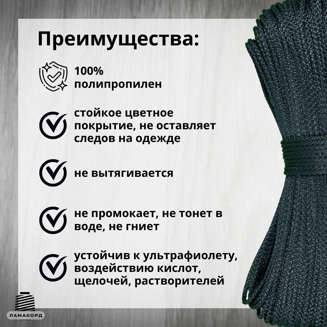 Веревка бельевая 4 мм 50 м зеленая. Шнур бельевой вязаный полипропиленовый с сердечником