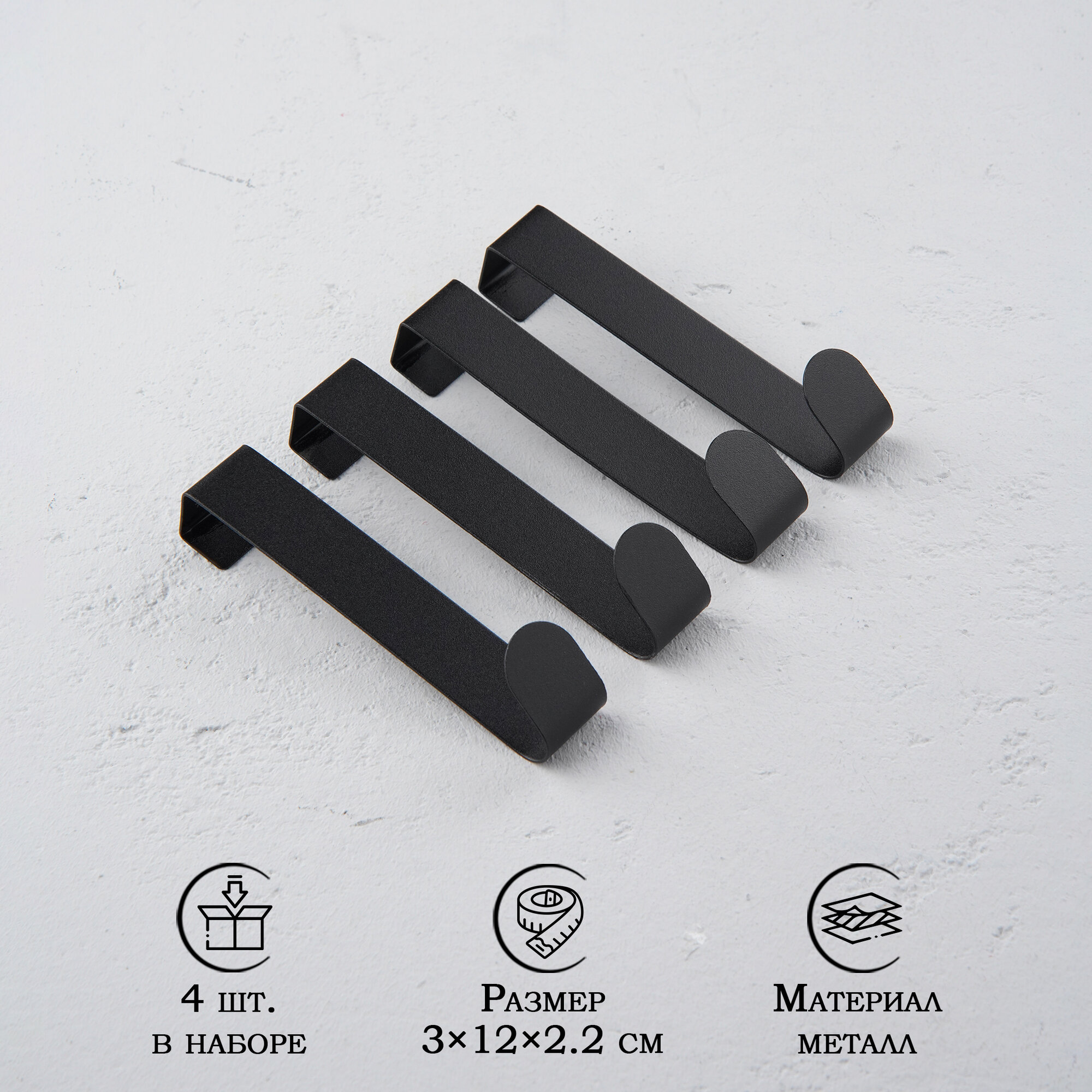 Набор металлических надверных крючков "Black Loft Door Long", 4 шт, 3х12х2,2, дверь 1,8 см 9936822