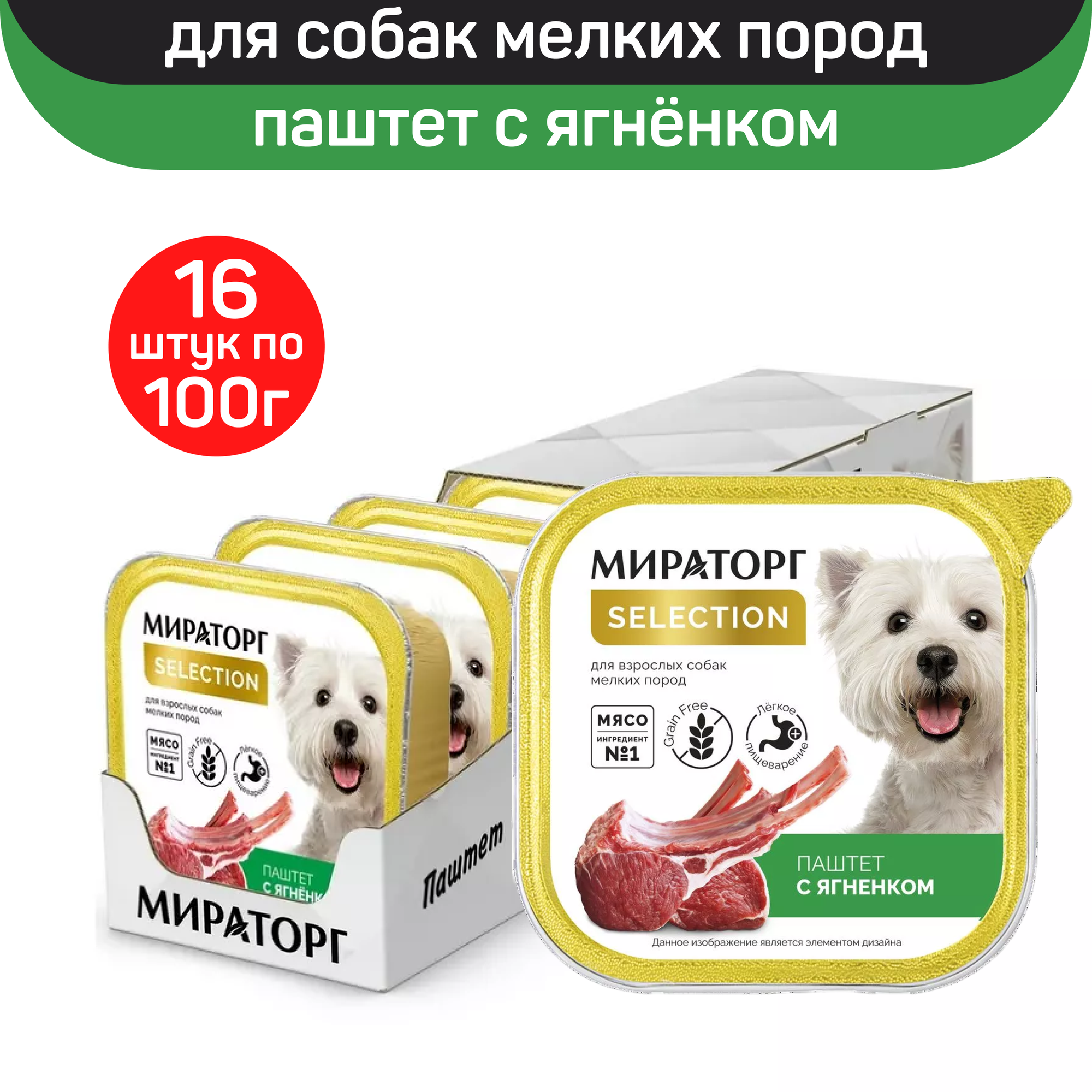 Влажный корм Мираторг Selection для собак, паштет с ягненком, 100г х 16шт
