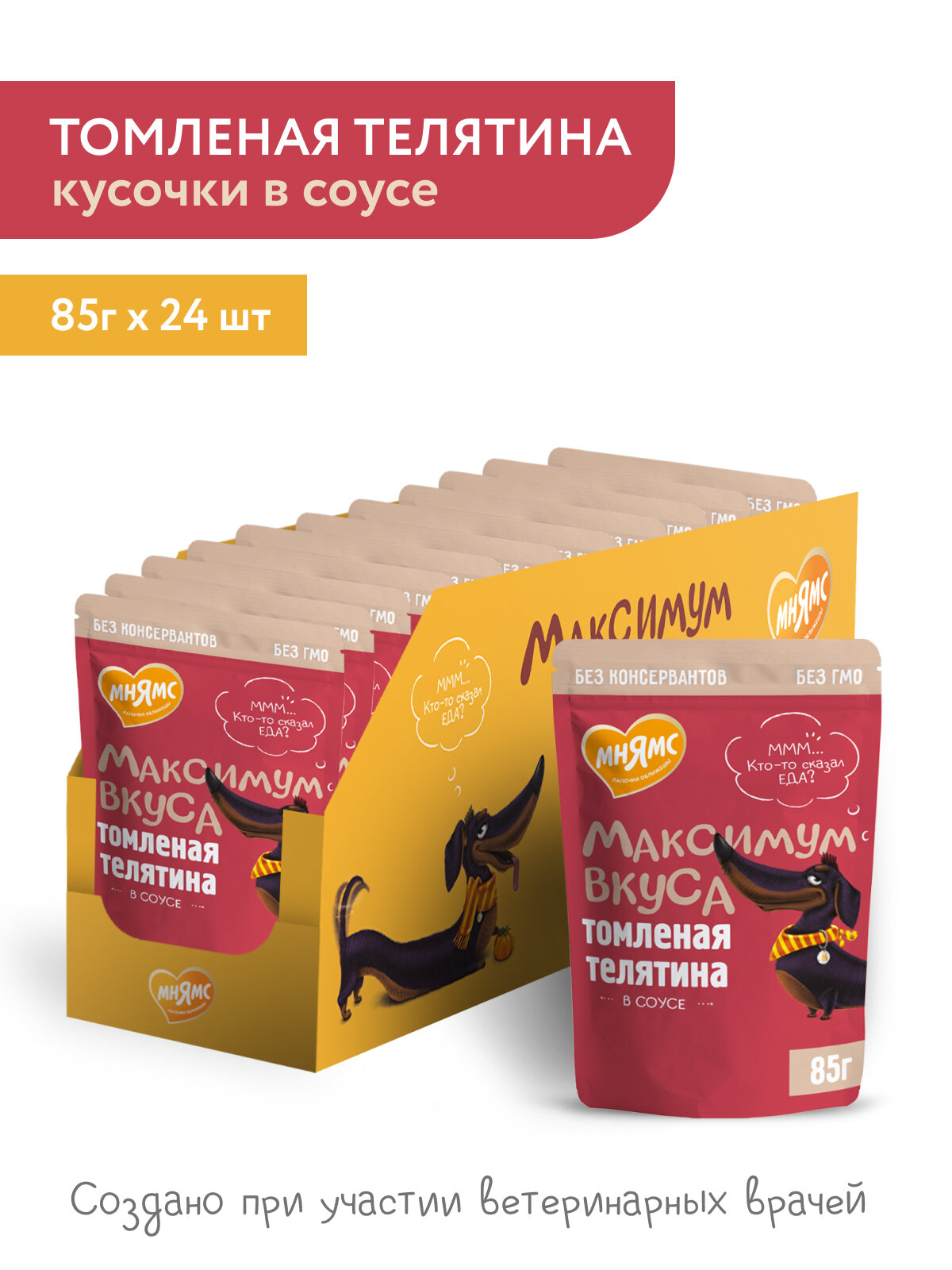 Мнямс пауч томленая телятина в соусе для собак "Максимум вкуса" 85 г х 24 шт интересное: