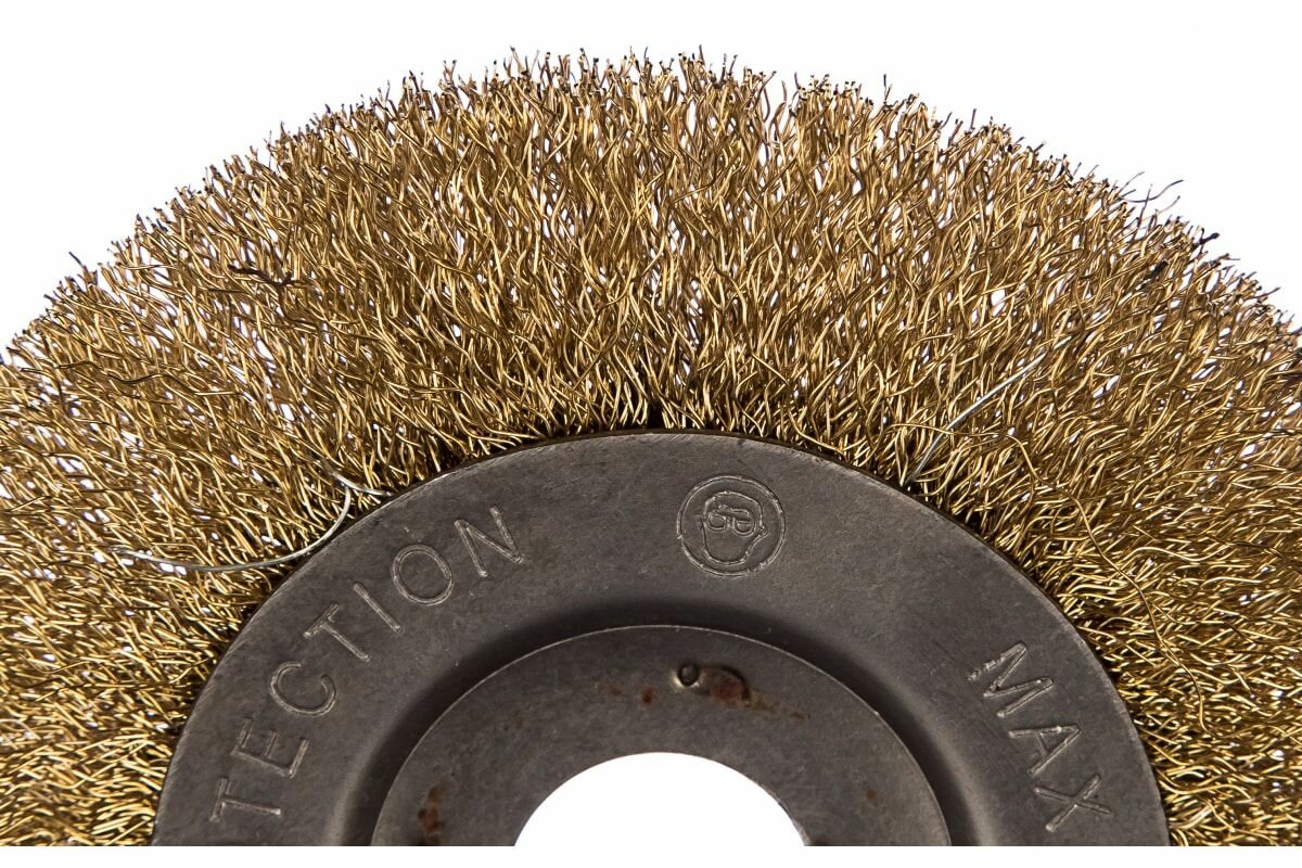 Купить Корщетка-колесо, посадочный диаметр 22,2 мм, стальная латунированная волнистая проволока 125 мм