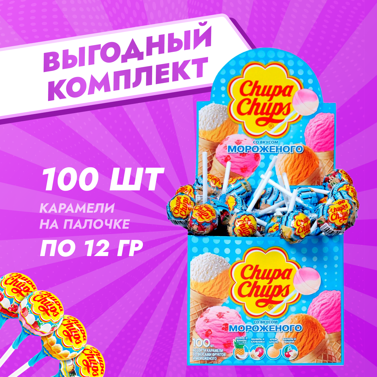 Купить Chupa Chups Карамель на палочке со вкусом мороженого ассорти 12 г х 100 шт