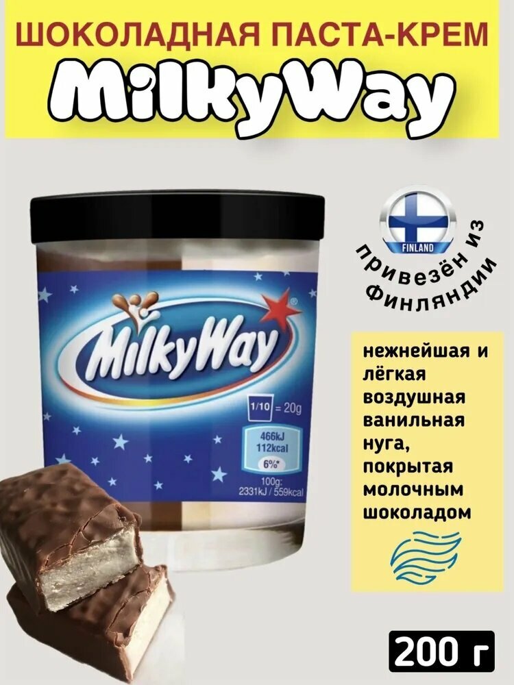 | Комплектация | Шоколадная паста Milky Way с молочным и белым шоколадом, 200 г - 6 баночек |