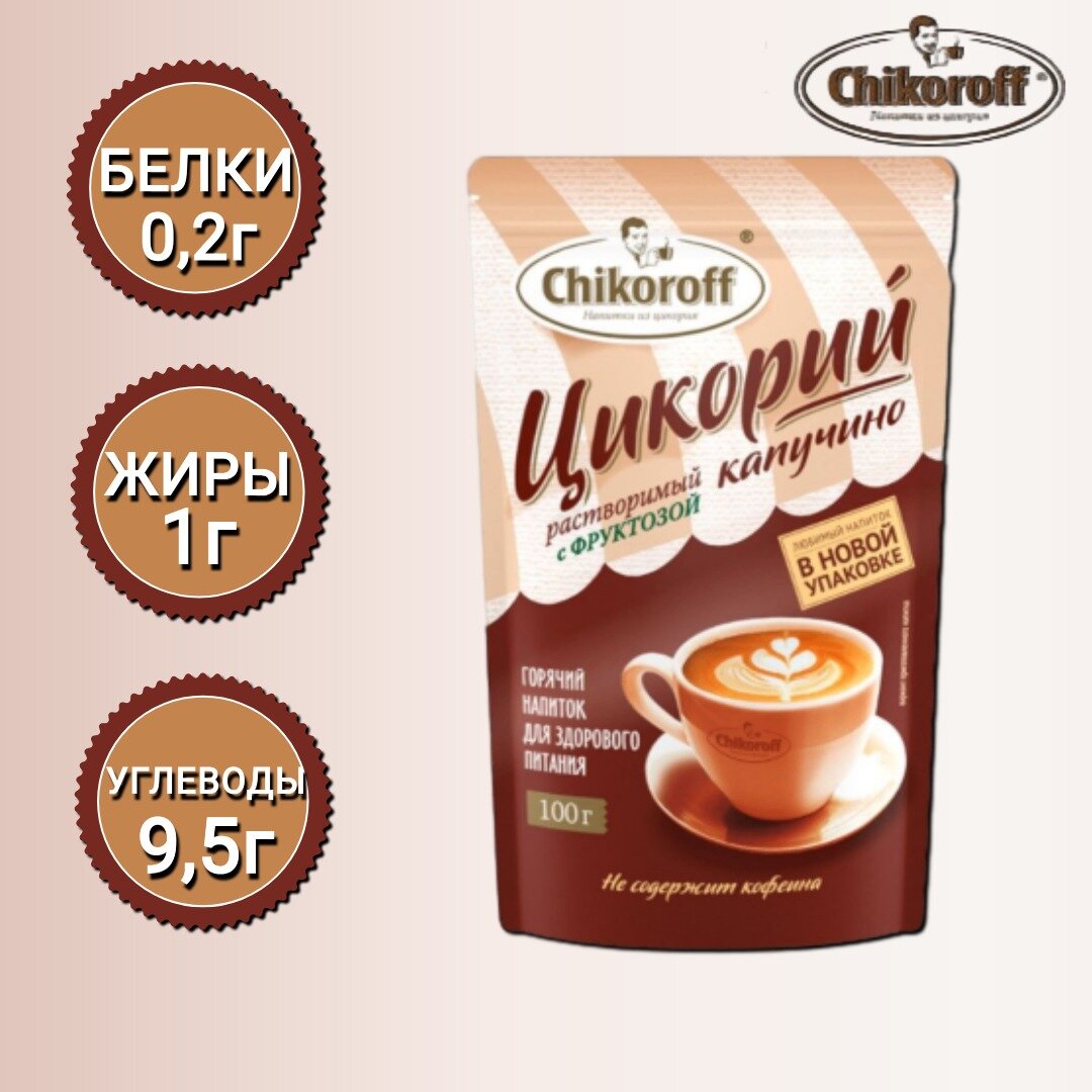 Купить Цикорий Chikoroff растворимый порошкообразный Капучино с фруктозой, в пакетиках, пакет, 100 г