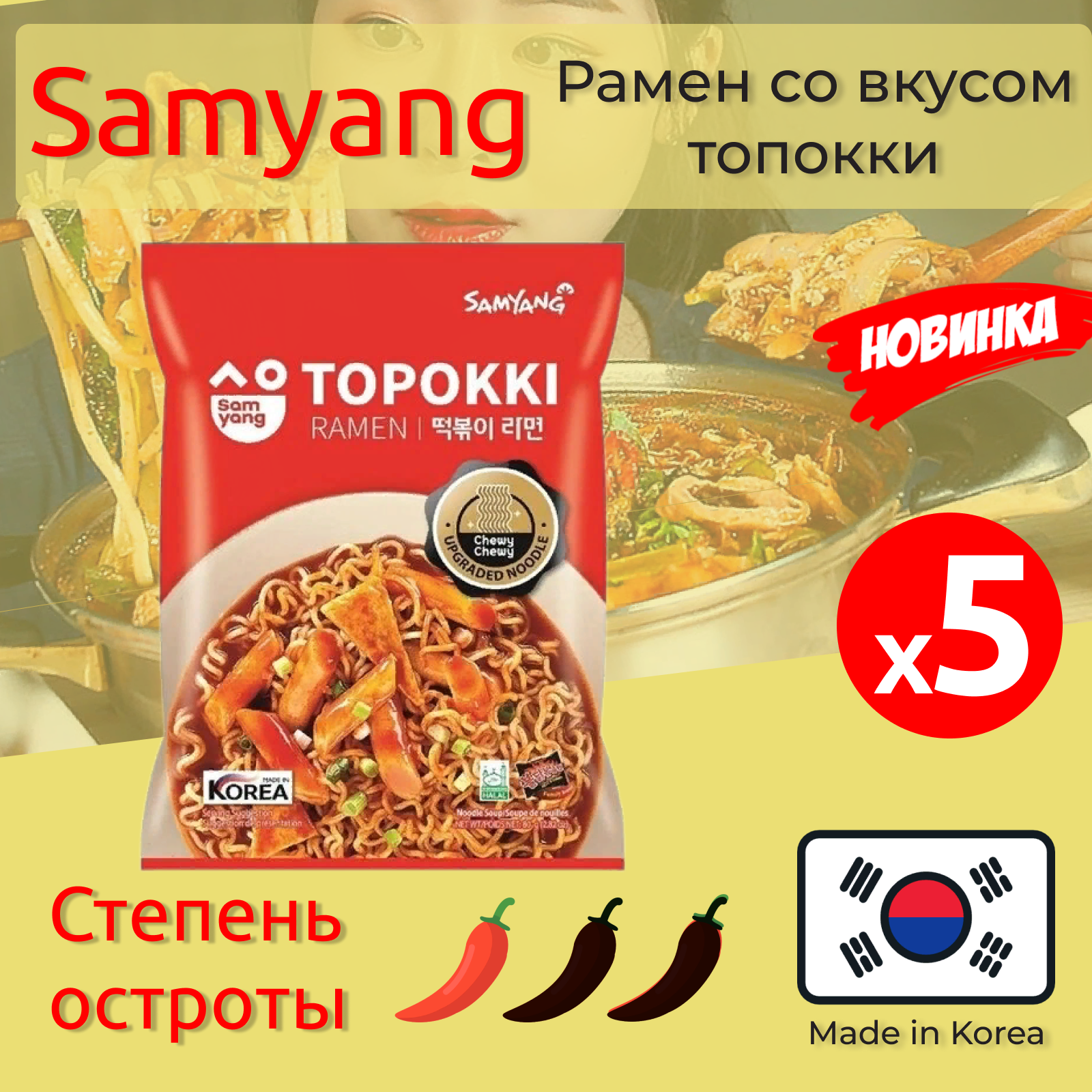 Купить Лапша быстрого приготовления Рамен со вкусом топокки Samyang, пачка 80 г х 5 шт