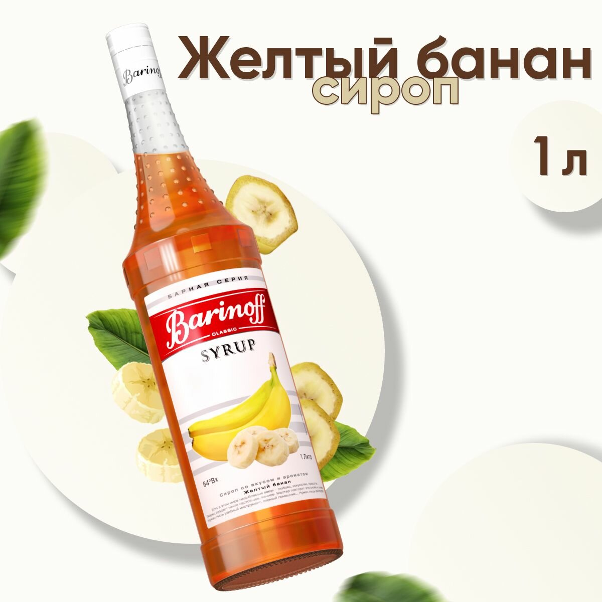 Сироп Barinoff Желтый банан (для кофе, коктейлей, десертов, лимонада и мороженого), 1л