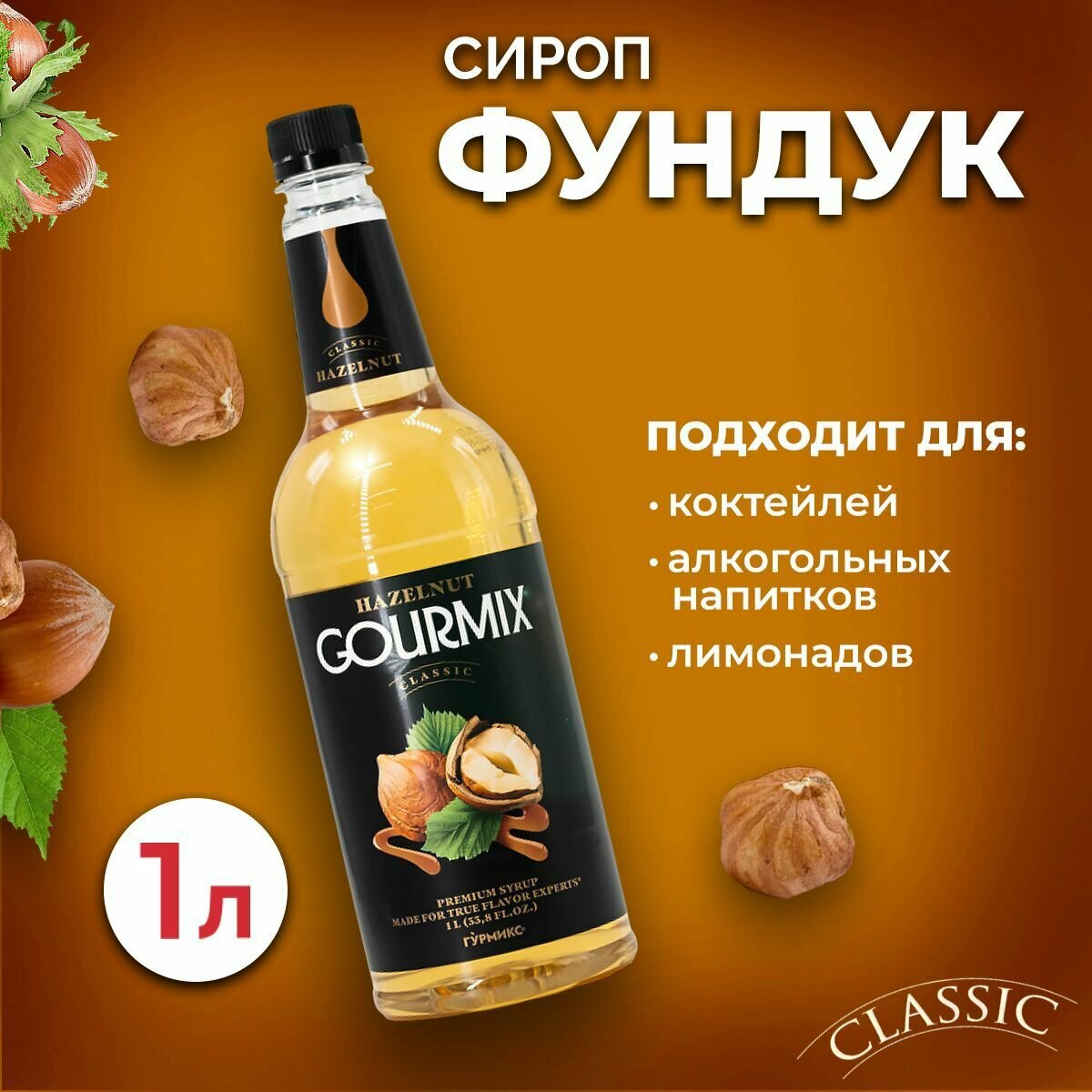 Сироп для кофе, чая и коктейлей Gourmix (Гурмикс) Фундук 1л. Для кофеен и для дома.