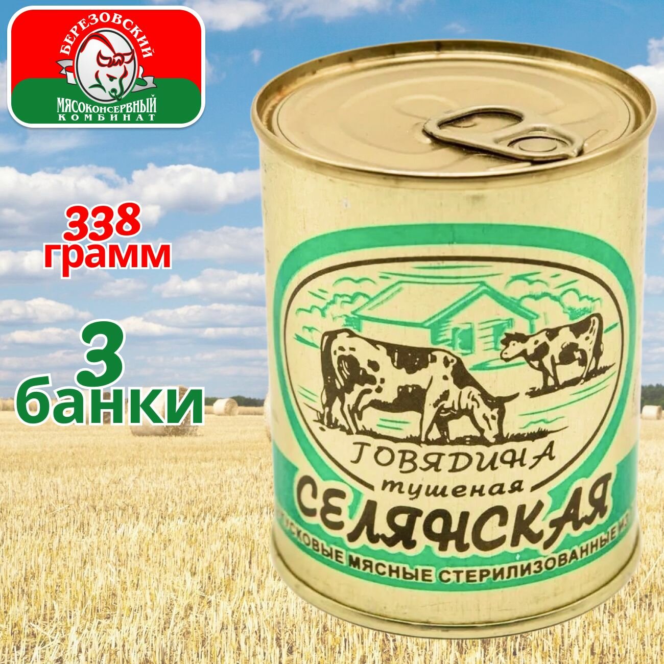 Говядина тушеная Селянская, Береза, Белорусская, 3 шт. по 338 г