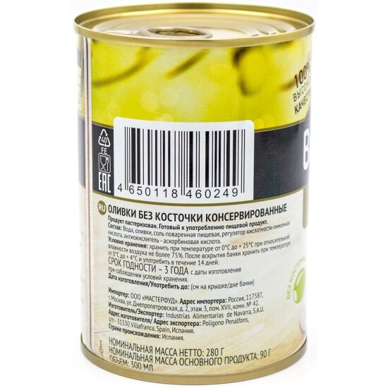 | Состав | вода, оливки, соль пищевая поваренная, регулятор кислотности-лимонная кислота |