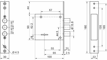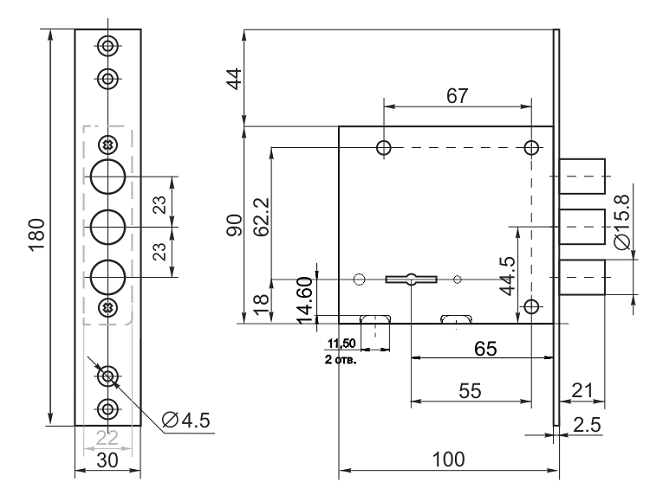 Замок врезной магнитный 25М-85 мм, чёрный Нора-М 18525