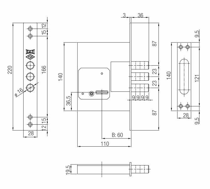 Замок врезной Kale kilit (Кале килит) сувальдный 257/L (тех. комплектация), 4 кл.