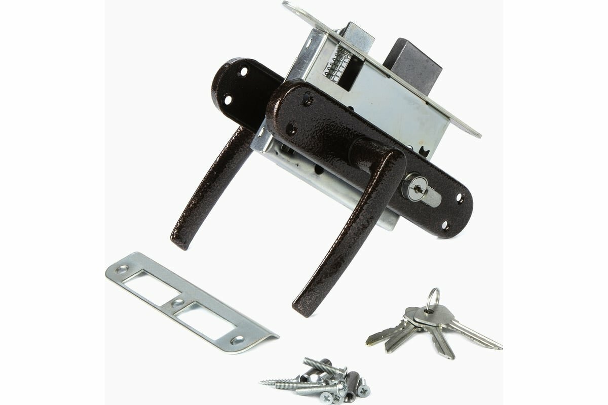 Врезной замок с ручками для деревянных дверей, расстояние 55 мм Птимаш ЗВ4-3.08 бронза крепление шурупами