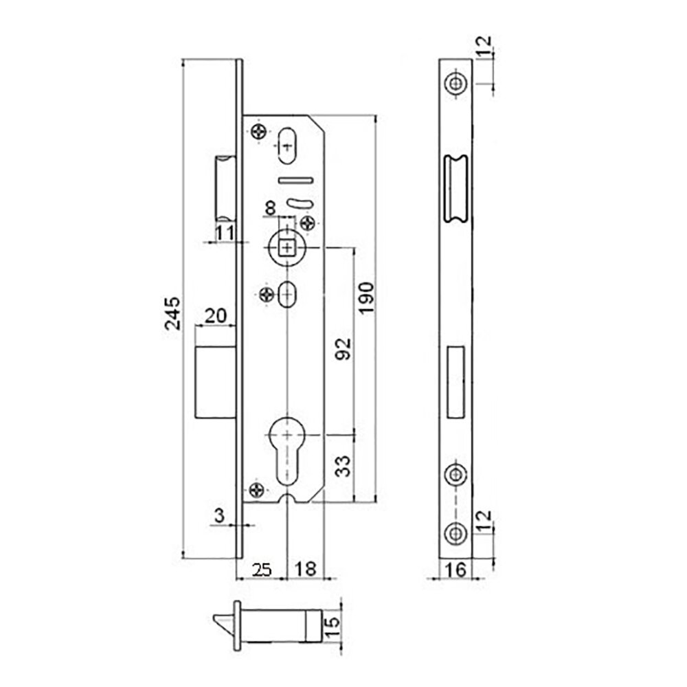 Замок врезной риг.+рол. 7300-25-R-NIS для Алюм.