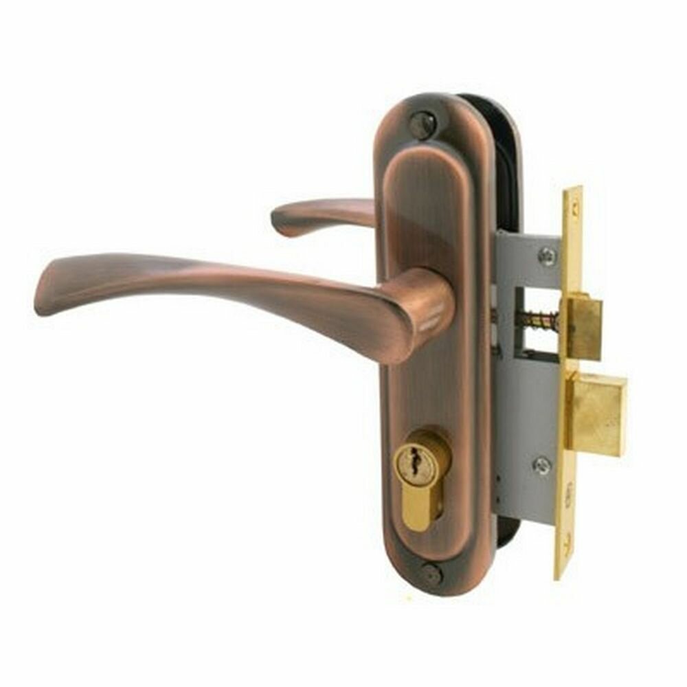 Врезной замок для деревянных дверей с ручками (левых и правых) Стандарт 103/50 AC старая медь