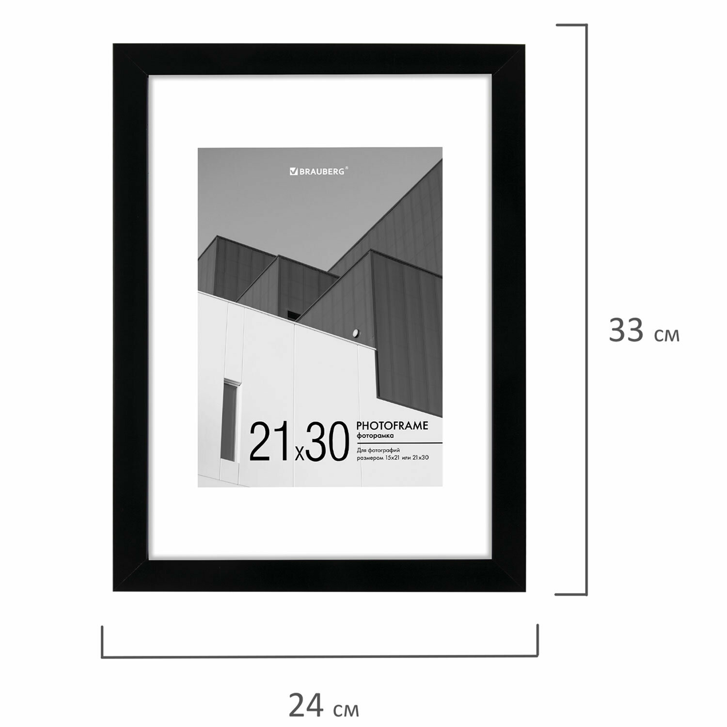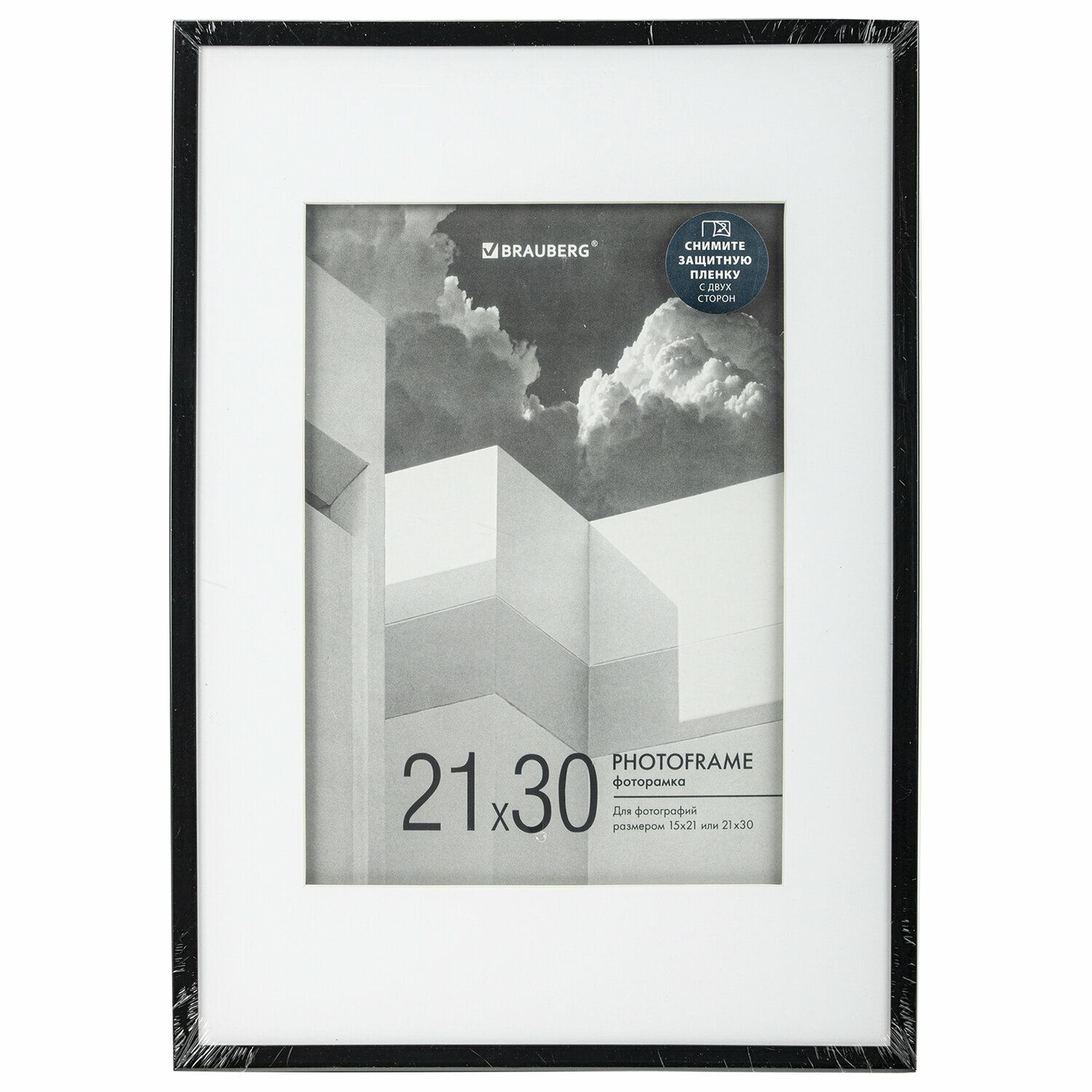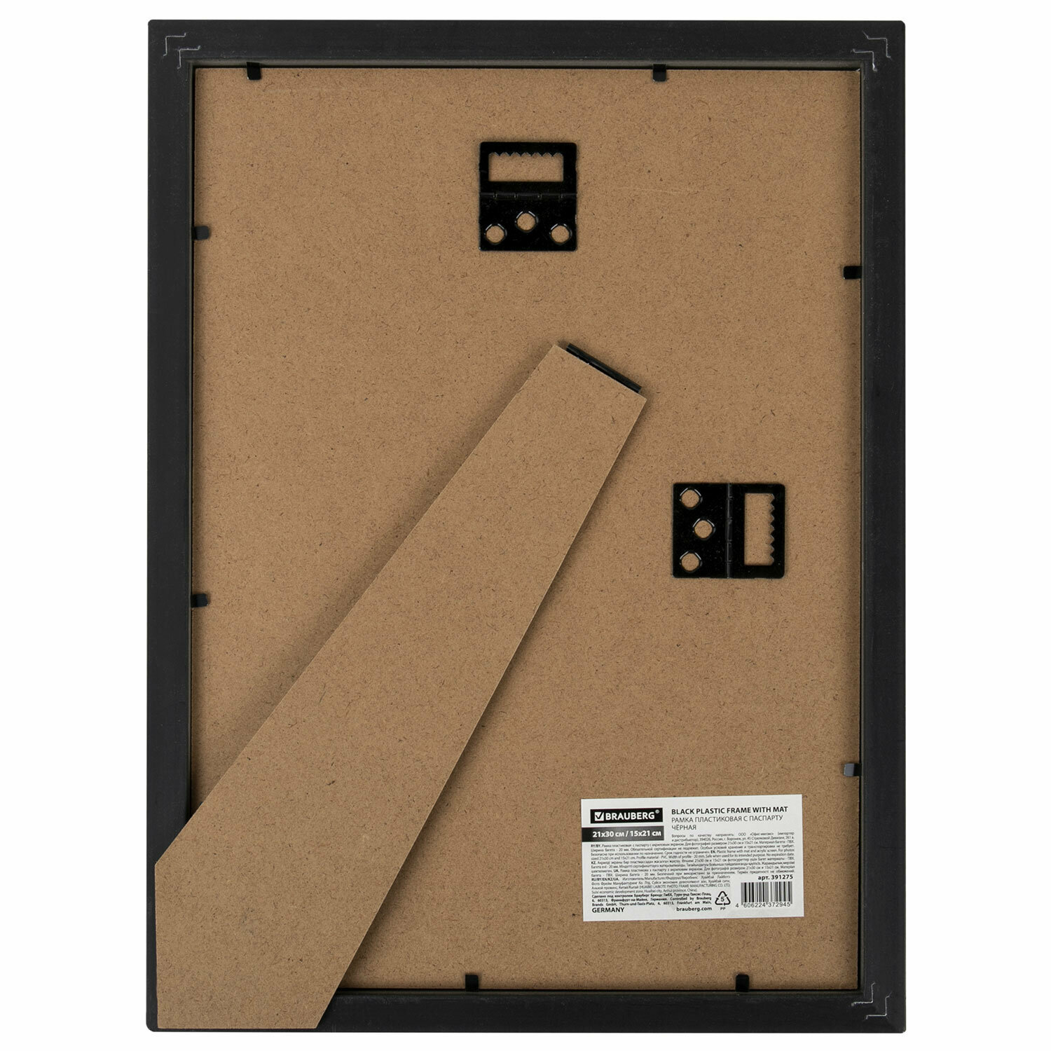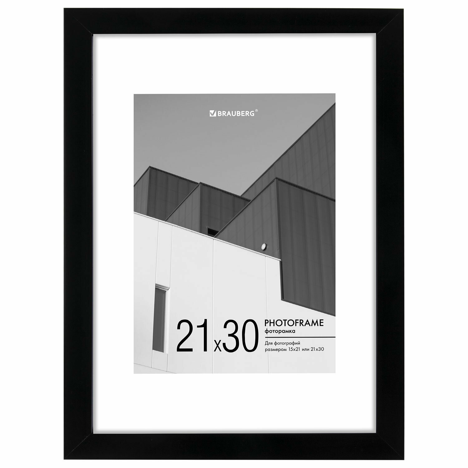 Рамка Brauberg 21х30 см с паспарту 15х21 см небьющаяся, багет 5 мм, пластик, "Smart", черная, 391280
