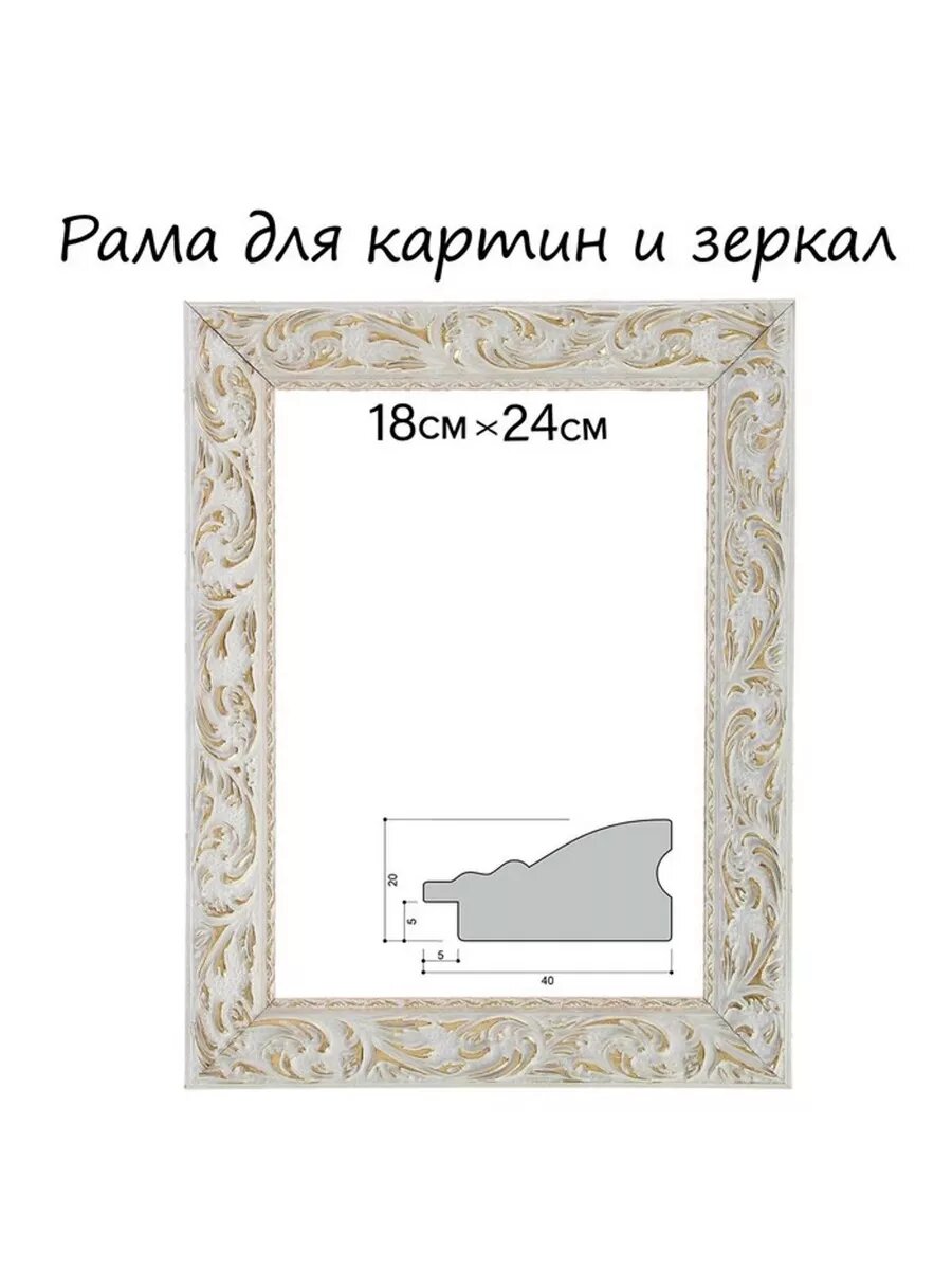 Рама для картин (зеркал) дерево 18*24*4.0 см, "Версаль" цвет бело-золотой 1386395 интересное: