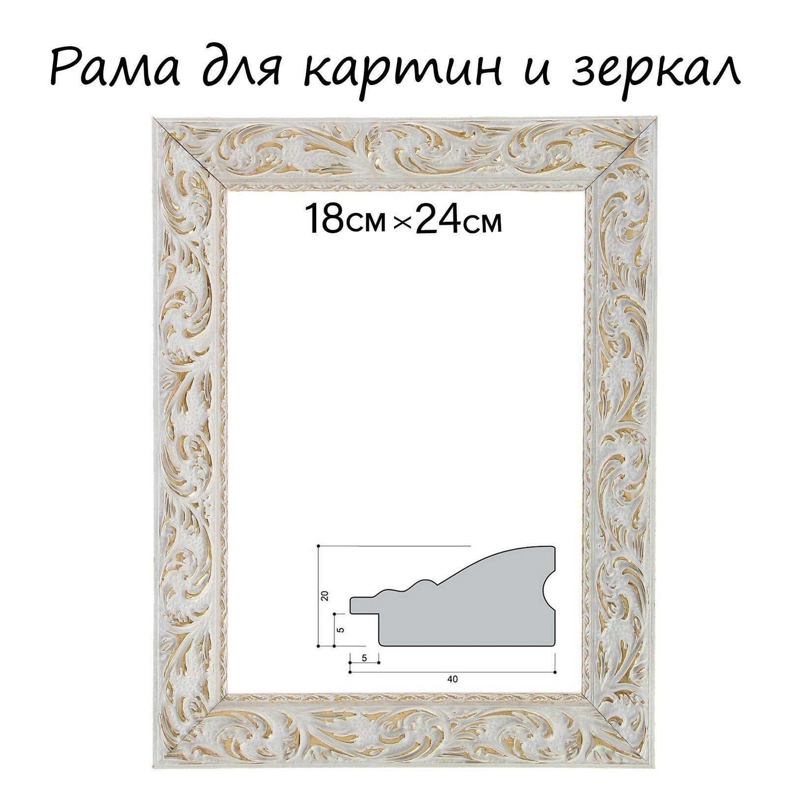 Купить Рама для картин (зеркал) дерево 18*24*4.0 см, "Версаль" цвет бело-золотой 1386395