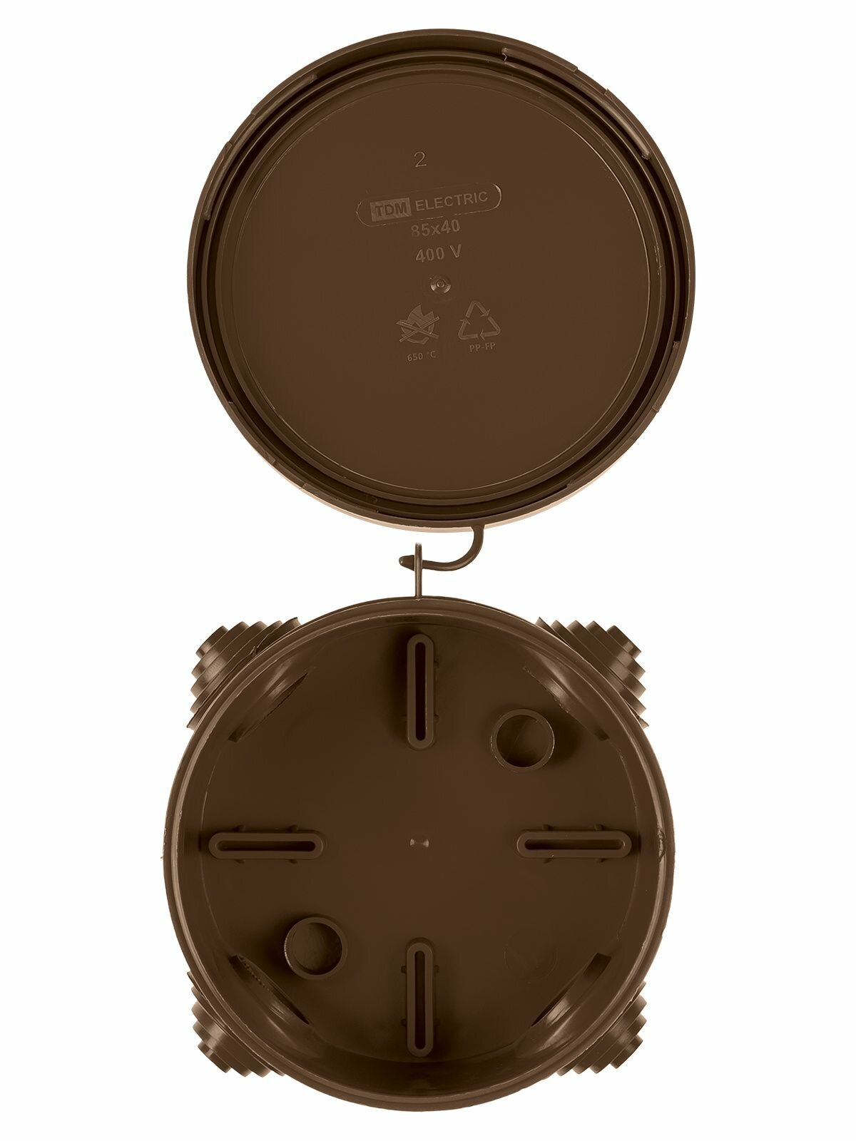 Распаячная коробка ОП D85х40мм, крышка, "ЭКО" (венге), IP54, 4вх. инд. штрихкод TDM
