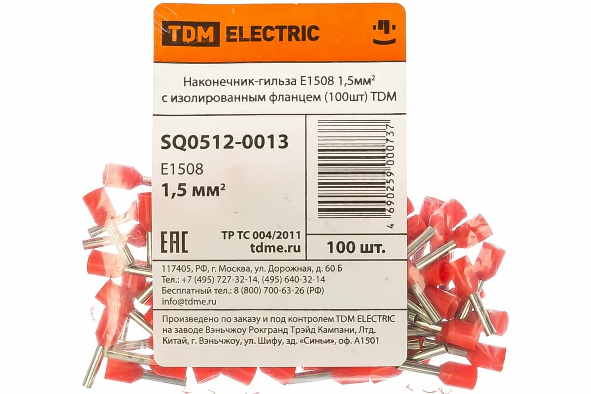 TDM Наконечник-гильза Е1508 1,5мм2 с изолированным фланцем 100шт TDM SQ0512-0013