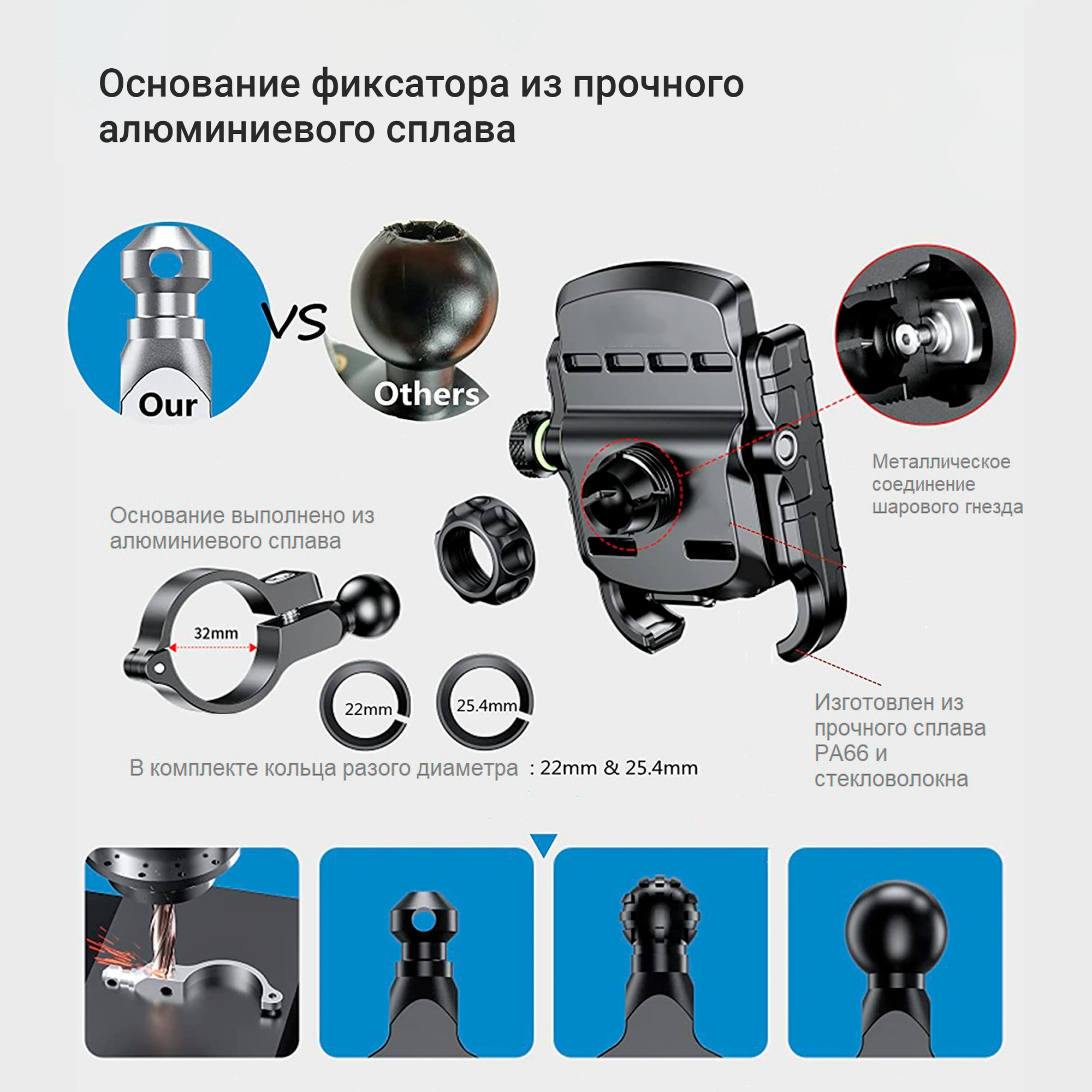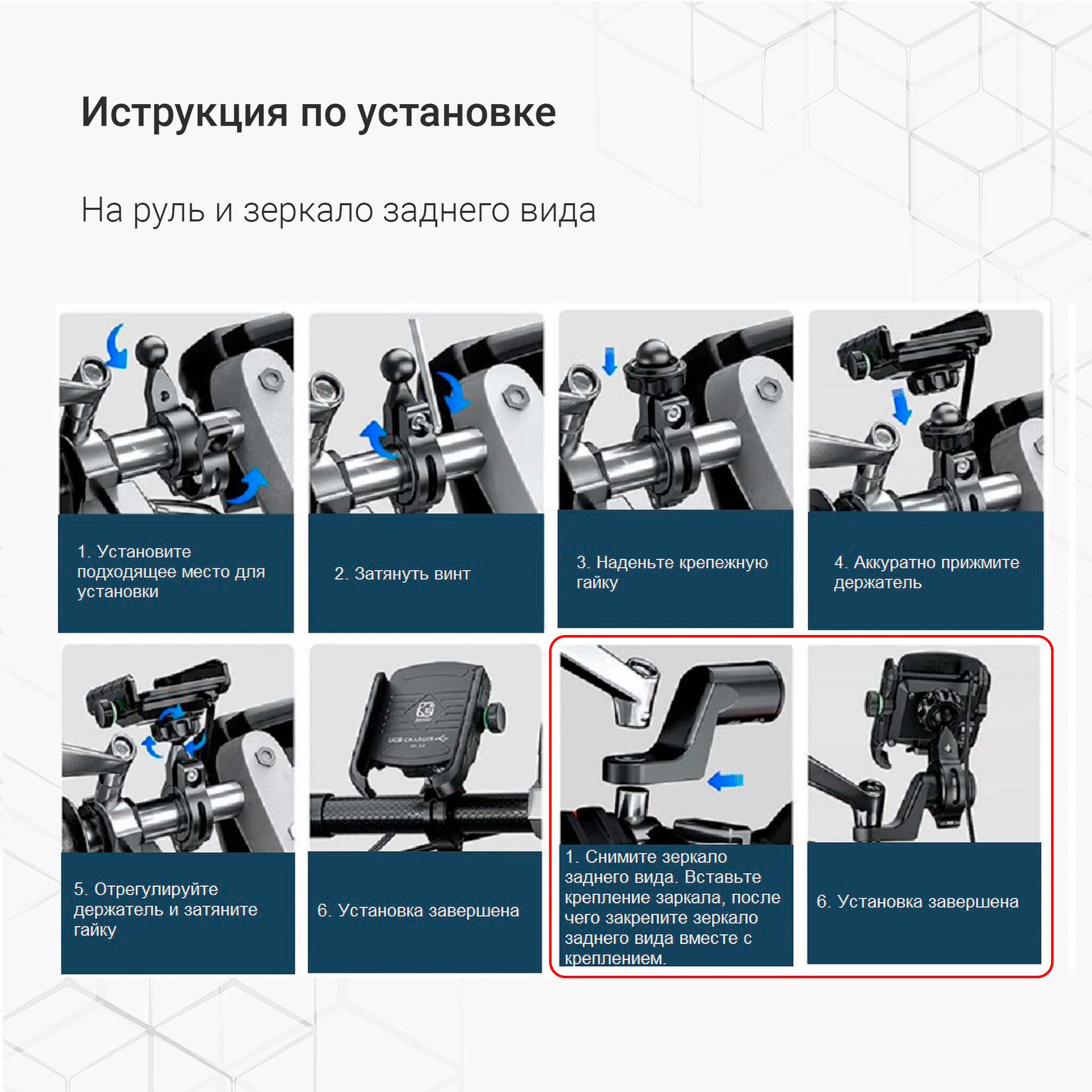 | Место крепления | зеркало заднего вида, руль, трубчатый элемент, универсальное |