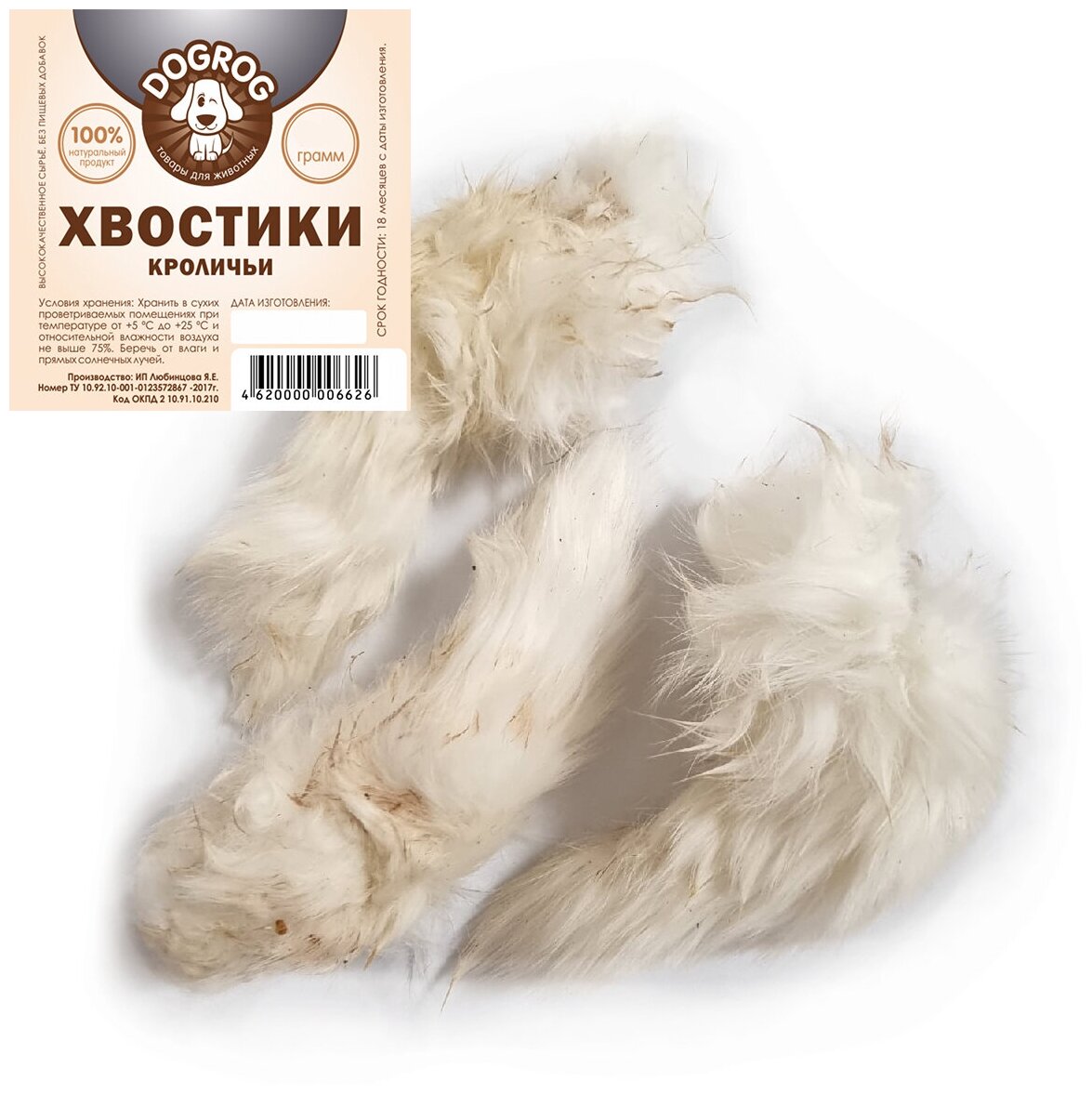 Хвостики кроличьи сушёные, 100 гр, натуральное лакомство-игрушка для собак и кошек (хвосты кролика), DOGROG