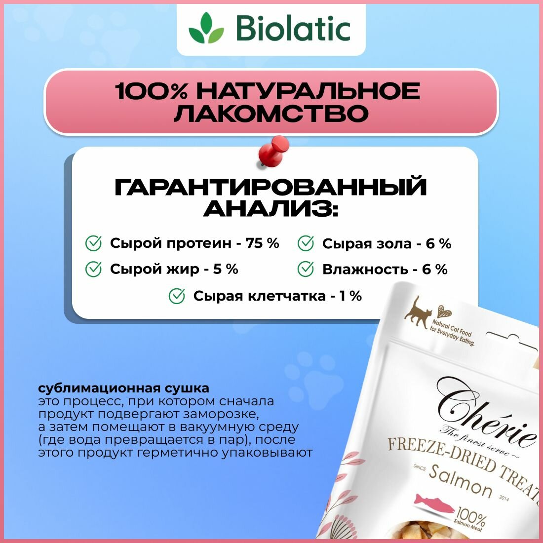 Лакомство PETTRIC CHERIE FREEZE-DRIED TREATS SALMON сублимированное для кошек с лососем 20 гр, 1 шт