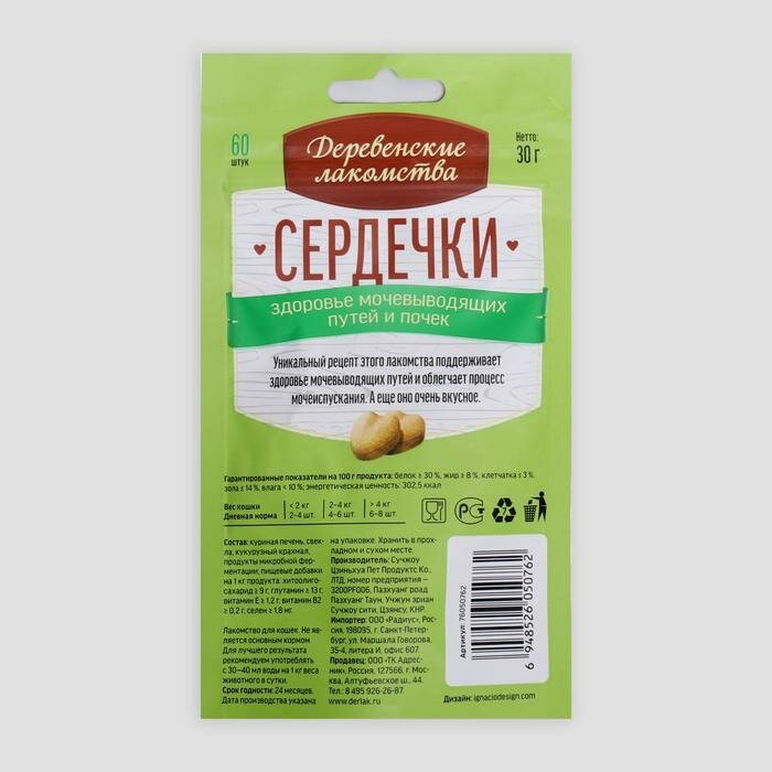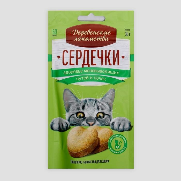 Лакомства деревенские для кошек сердечки для здоровья мочевыводящих путей и почек 30 гр (1 шт) интересное: