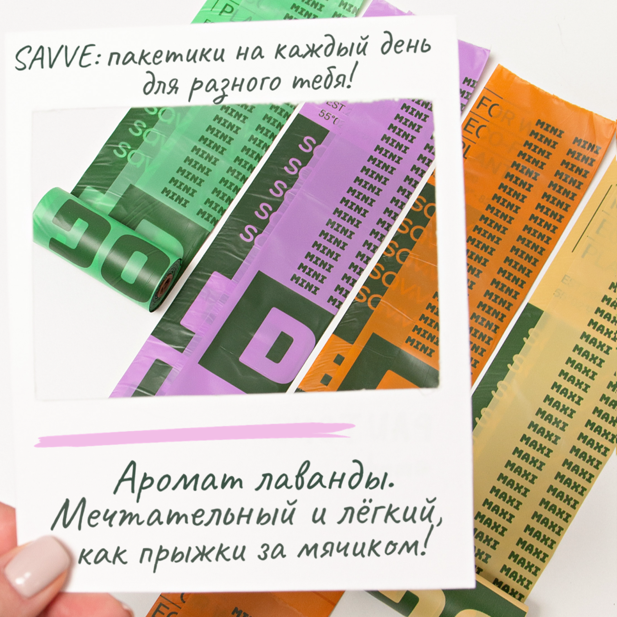 Купить Биоразлагаемые пакеты SAVVE Mini на органической основе для выгула собак, лаванда 60 штук