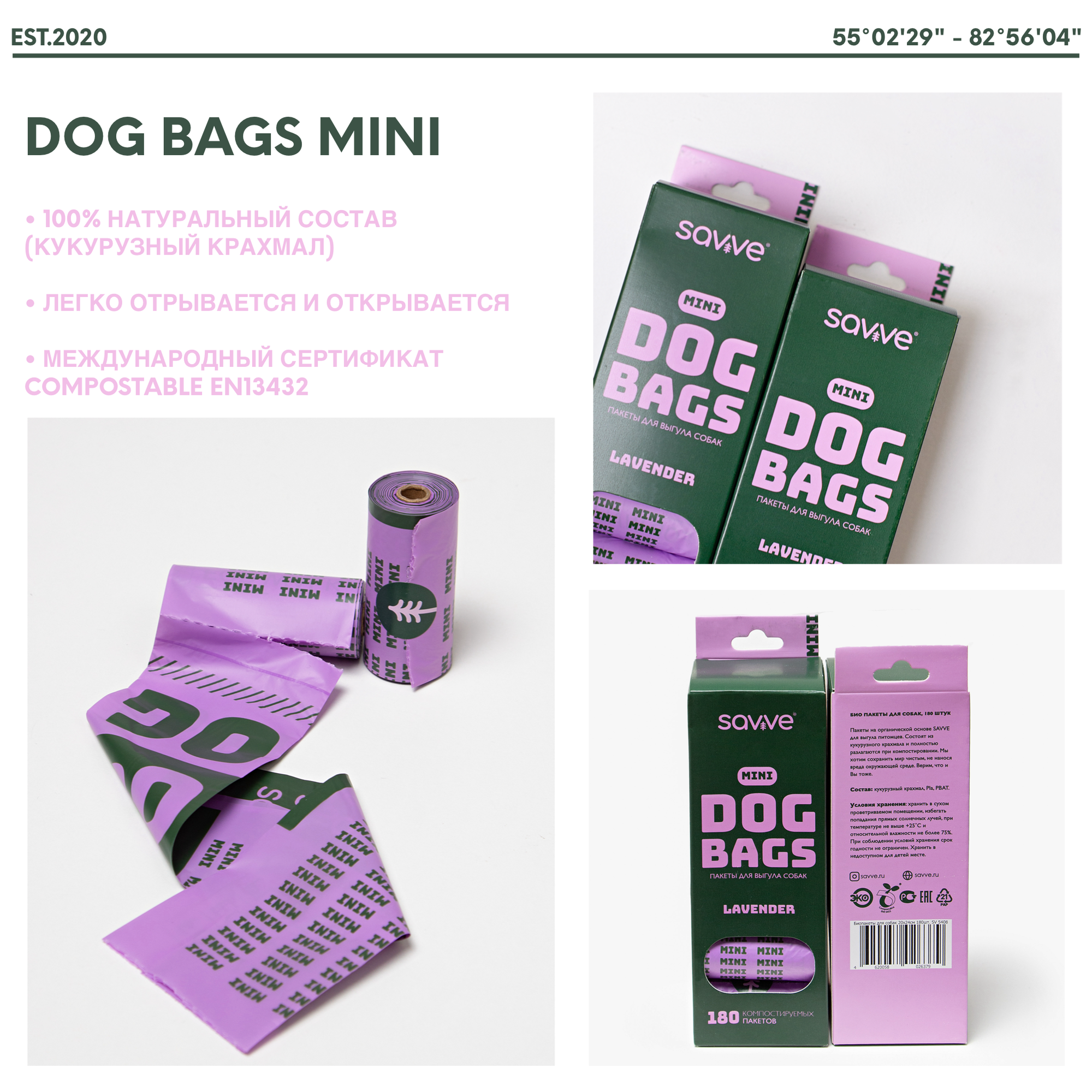 Биоразлагаемые пакеты SAVVE Mini на органической основе для выгула собак, лаванда 60 штук интересное: