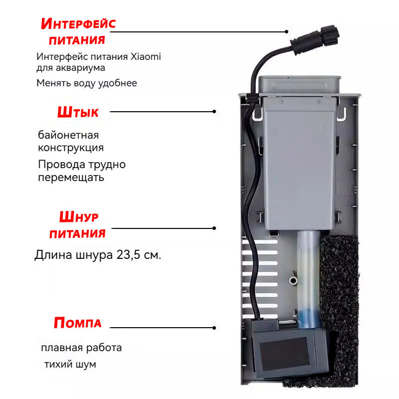 Водяной насос для умного аквариума Xiaomi Mijia Fish Tank (HWL-M100) CN интересное: